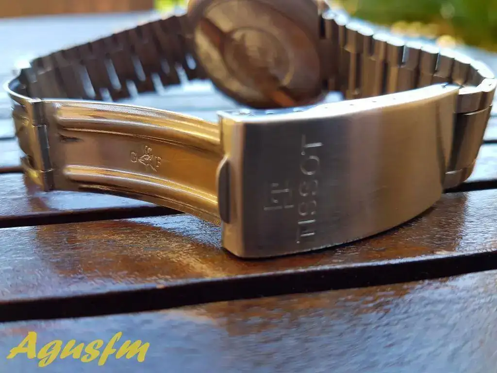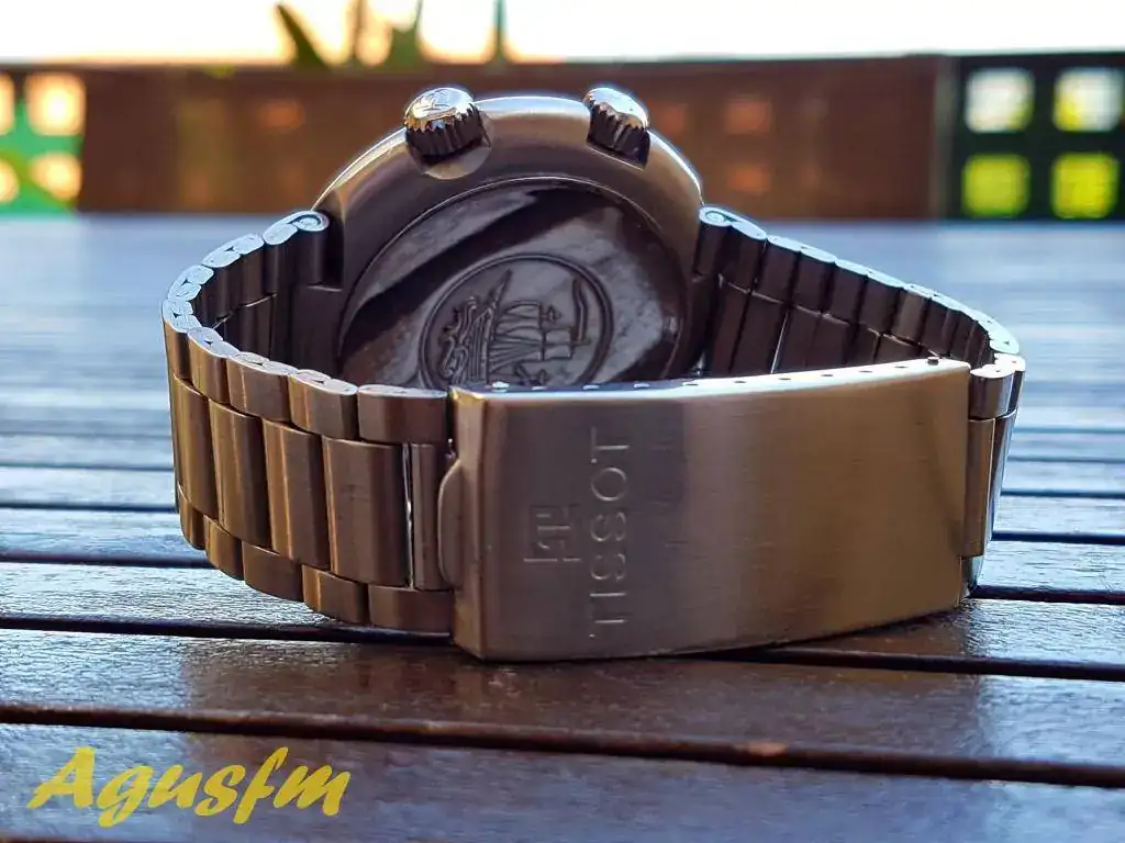 -Doble corona firmada Tissot, una situada a las 2 para mover el bisel interno y otra a las 4 para parada de segundero y puesta en hora.