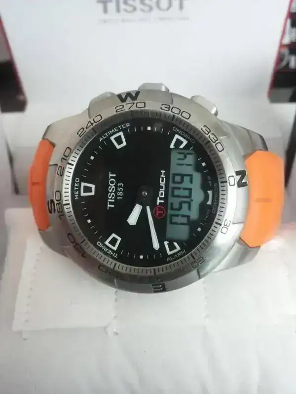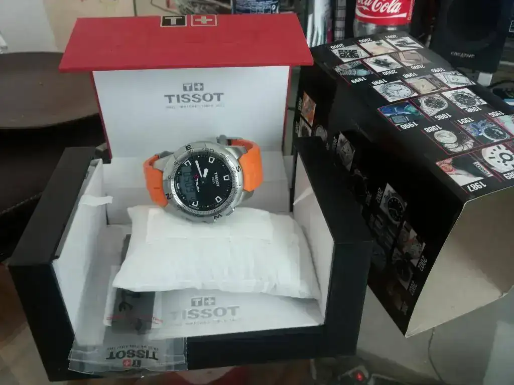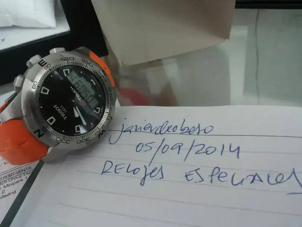 lo dicho vendo TISSOT TOUCH 2, modelo muy conocido, así que me ahorro especificaciones técnicas, y voy a describir el estado del mio. Es de acero con 2 cauchos negro y naranja, comprado por mi en relojería física de Madrid el 18/7/2012, se le puso la pila en garantía en enero de este año, (según documento factura que adjunto).