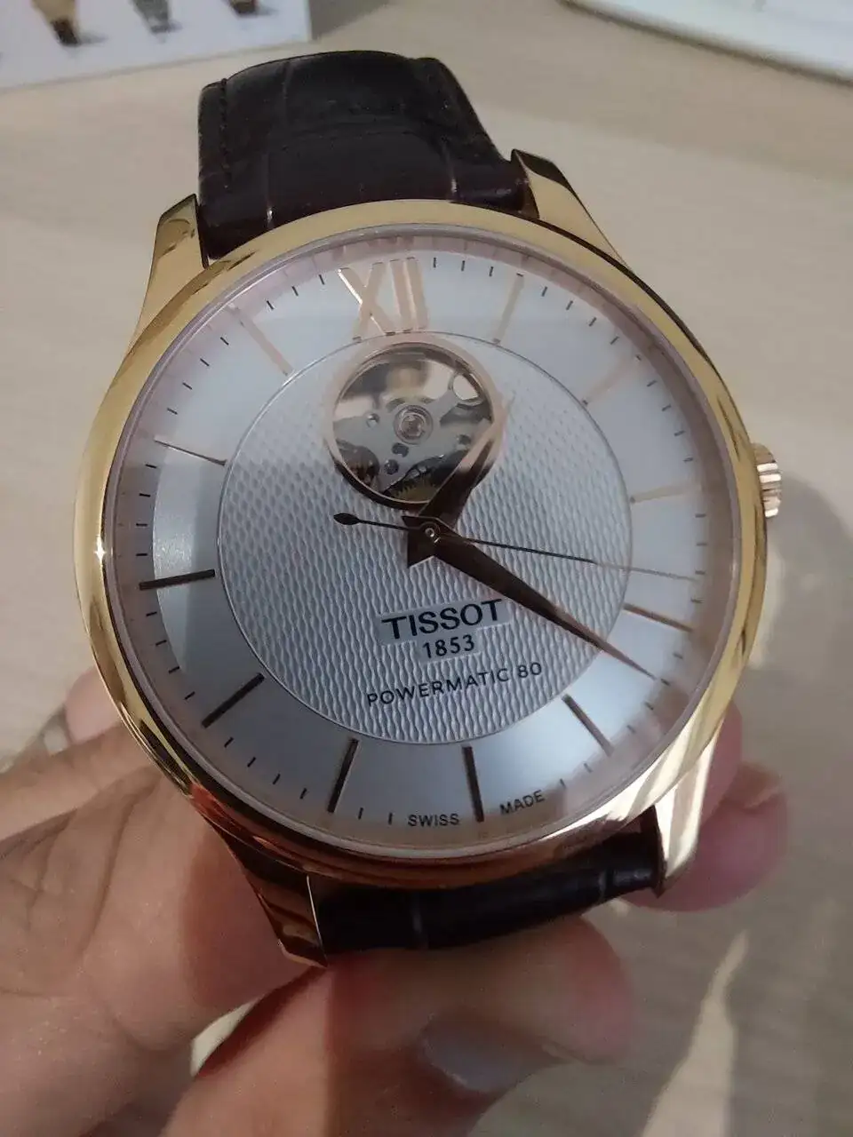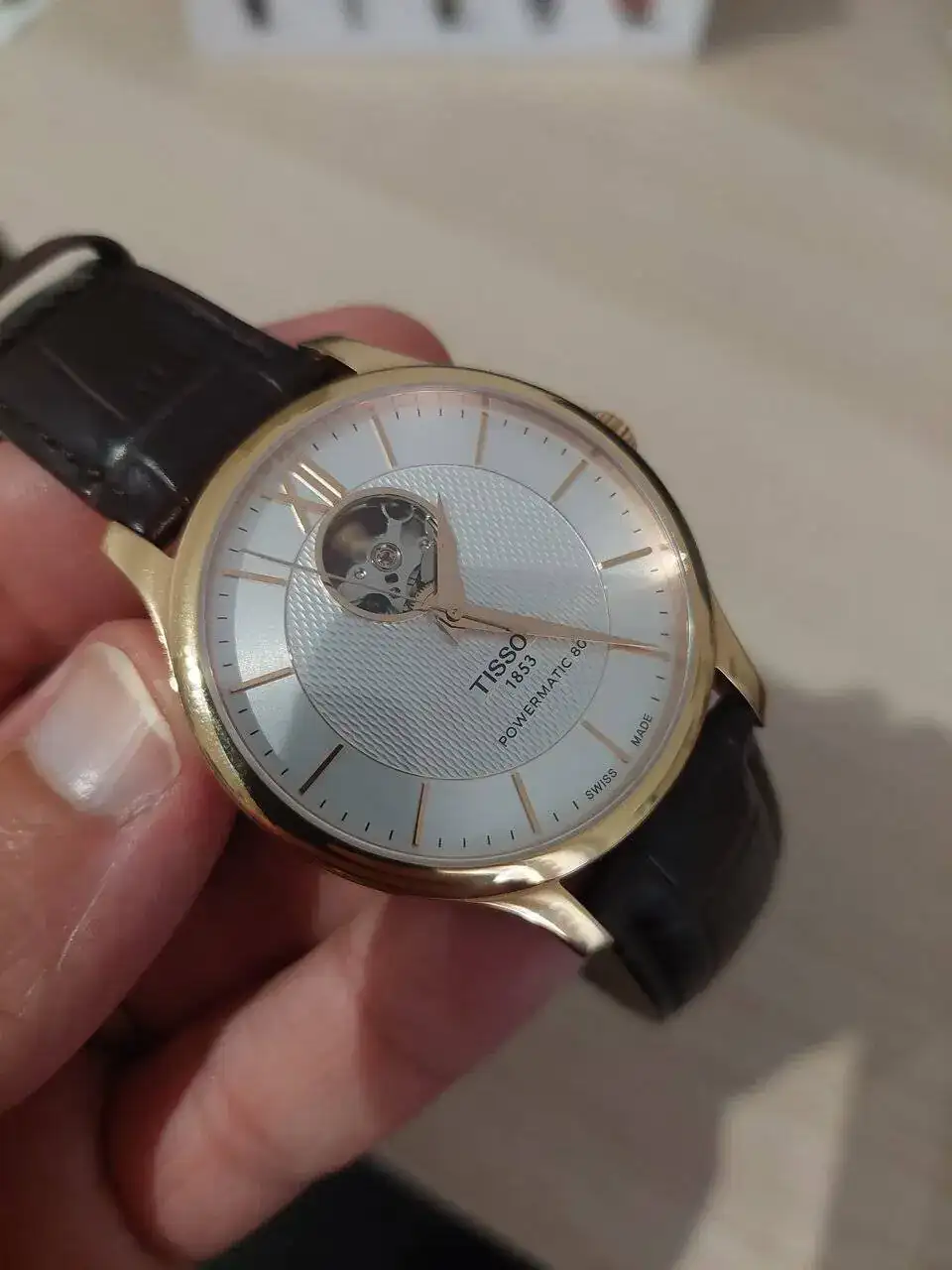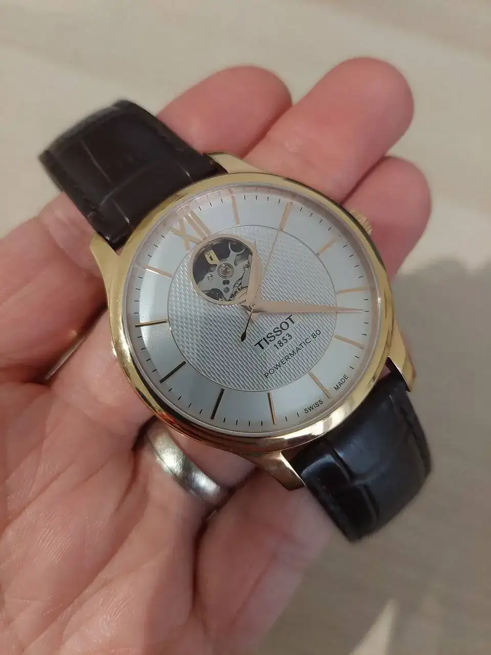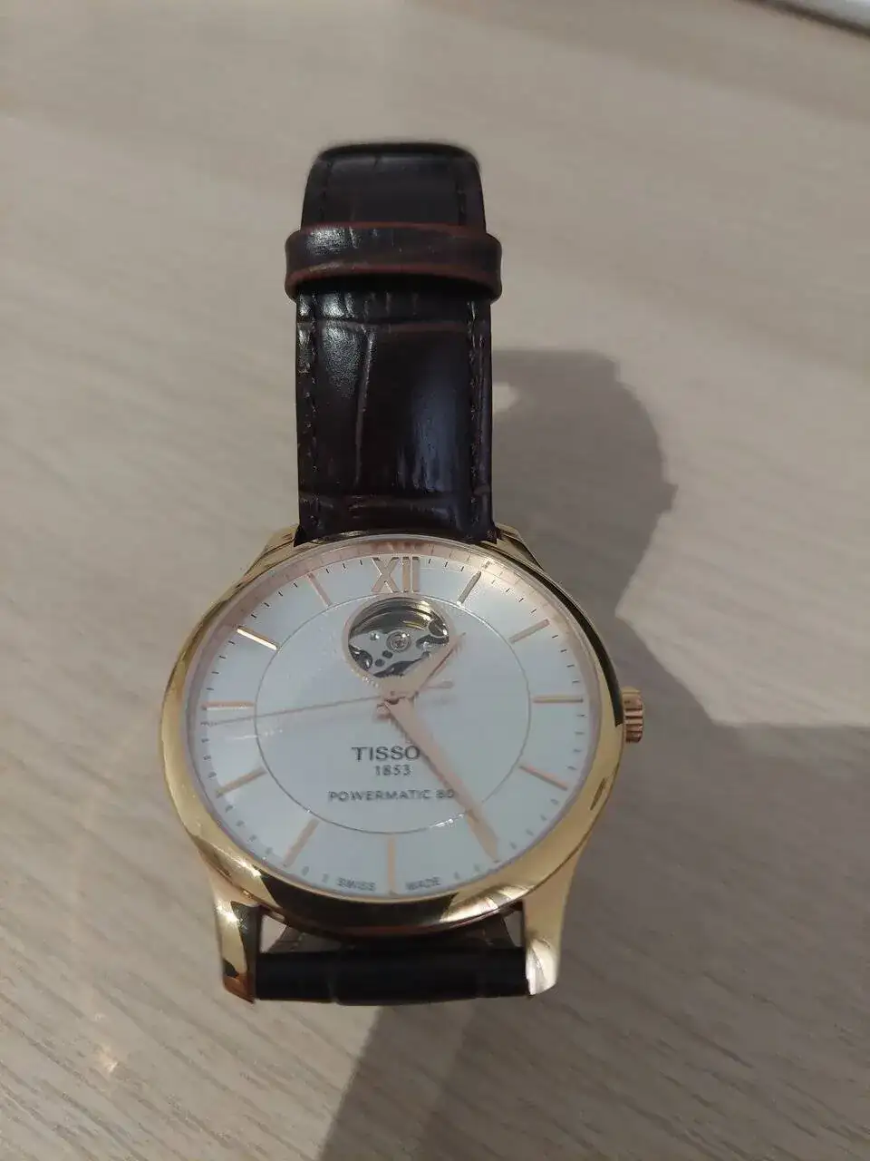 Pues ahí va la salida de mi primer reloj de "aficionado", mi primer automático: un Tissot tradition automático con powermatic80 y ventana (openheart) a las 12.