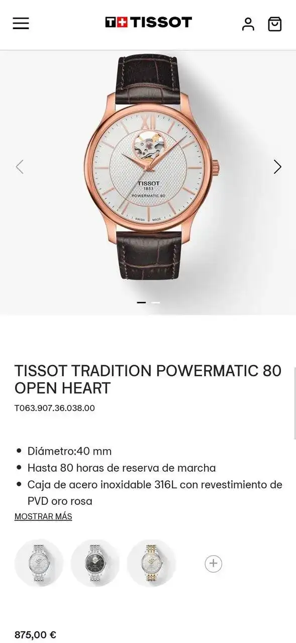 Adjunto fotos y captura de pantalla de la web de tissot con el modelo y el precio PVP actual (875 euros).