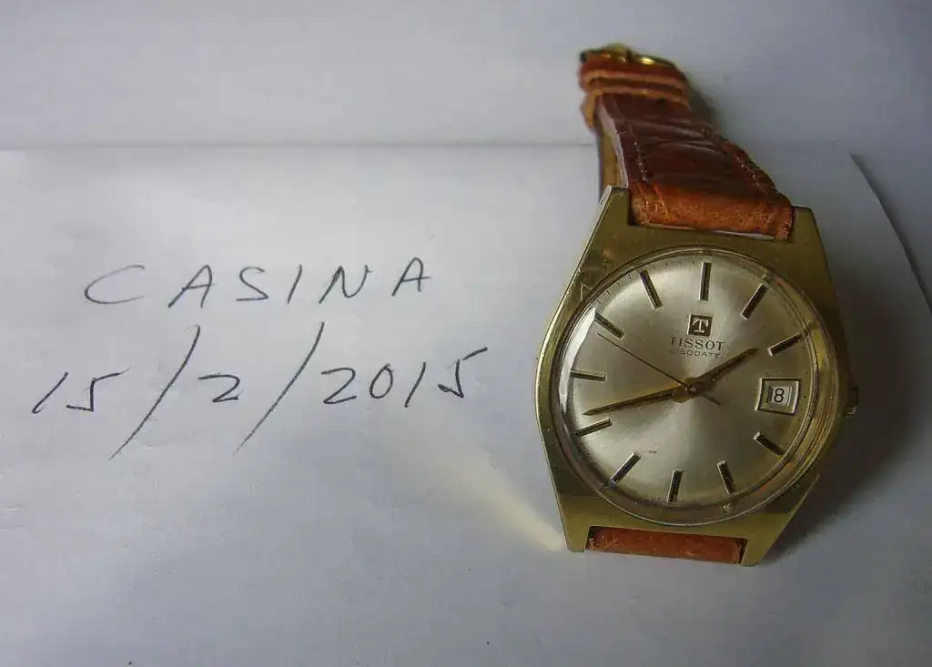 Vendo este reloj Tissot manual qure está en unas condiciones muy buenas, tanto estéticas como de funcionamiento. Tiene mínimas señales de uso en caja, la más apreciable a simple vista es la marca que tiene en las 10 y algunas rayas en la tapa posterior que no he podido fotografiar bien ya que hace de espejo y no consigo que salga enfocada.