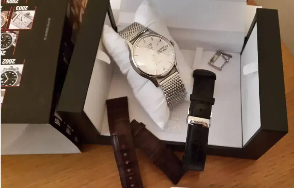 Viene con 3 correas. La milanesa que lleva puesta en las fotos no es de Tissot. Es genérica pero le queda de lujo. La correa marrón y el deployante si son los originales del reloj, y la correa negra restante es de cuero pero no original Tissot. En muy buen estado todas. Tienes un tres en uno.