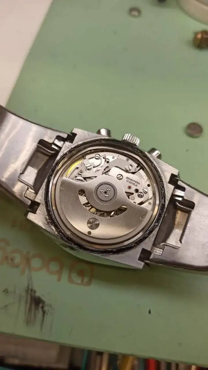 El movimiento de este reloj es el famoso Lemania cal. 1341, un cronógrafo automático usado también por Omega como algunos conoceréis.