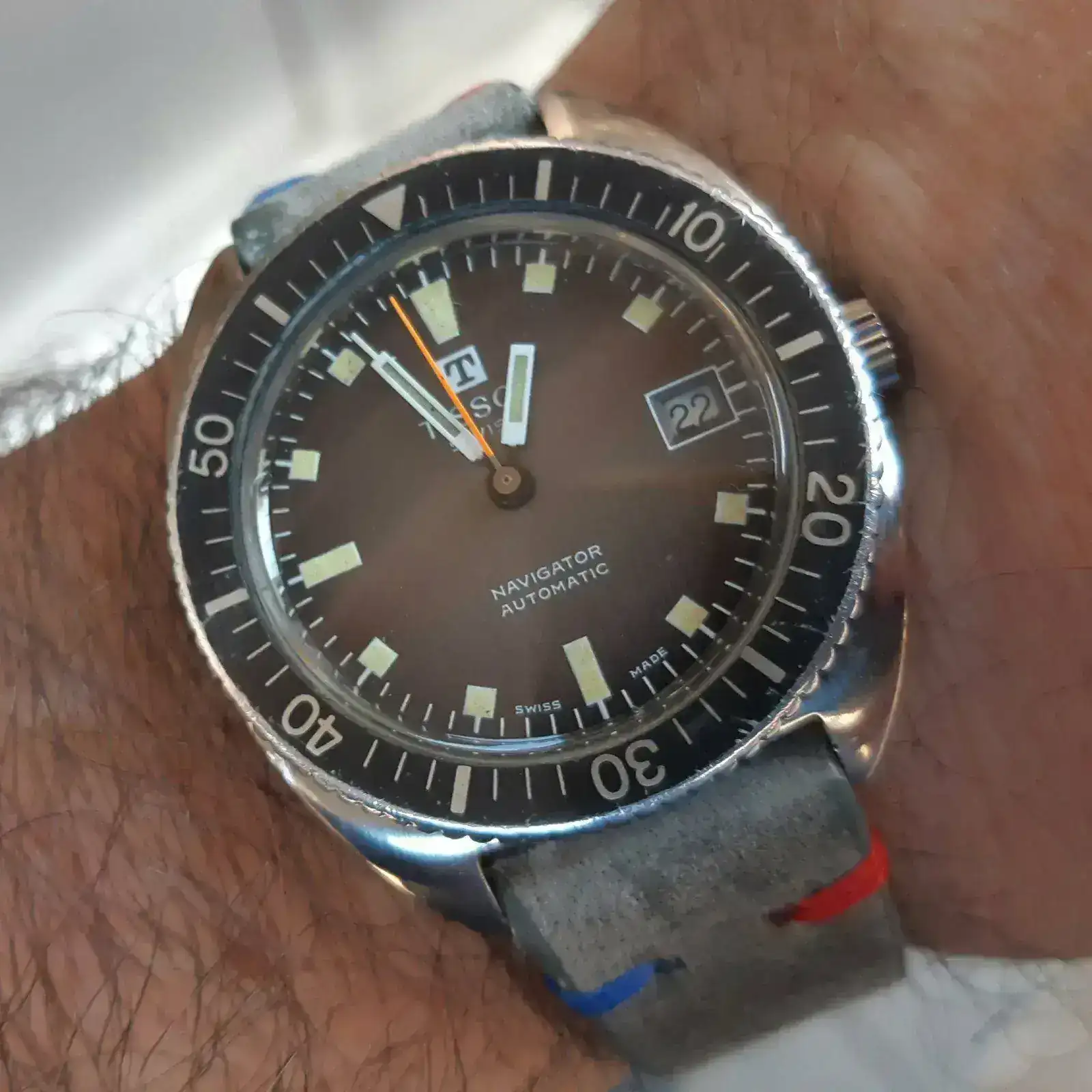 En cualquier caso, aunque sin mucho fundamento, yo creo que obedecía más bien a una cuestión de diseño. Sí que tal vez el uso de cajas SuperCompressor (EPSA comercializó la mayor parte de sus SC en 42mm) ya hizo partir de un tamaño bastante potente, pero mi apuesta es que fue el diseño de platillo volante buscado para esta subfamilia lo que determinó su generoso tamaño. Por otro lado, el "exceso" se lo lleva fundamentalmente la caja, ya que si te fijas las esferas se quedan en tamaños bastante habituales