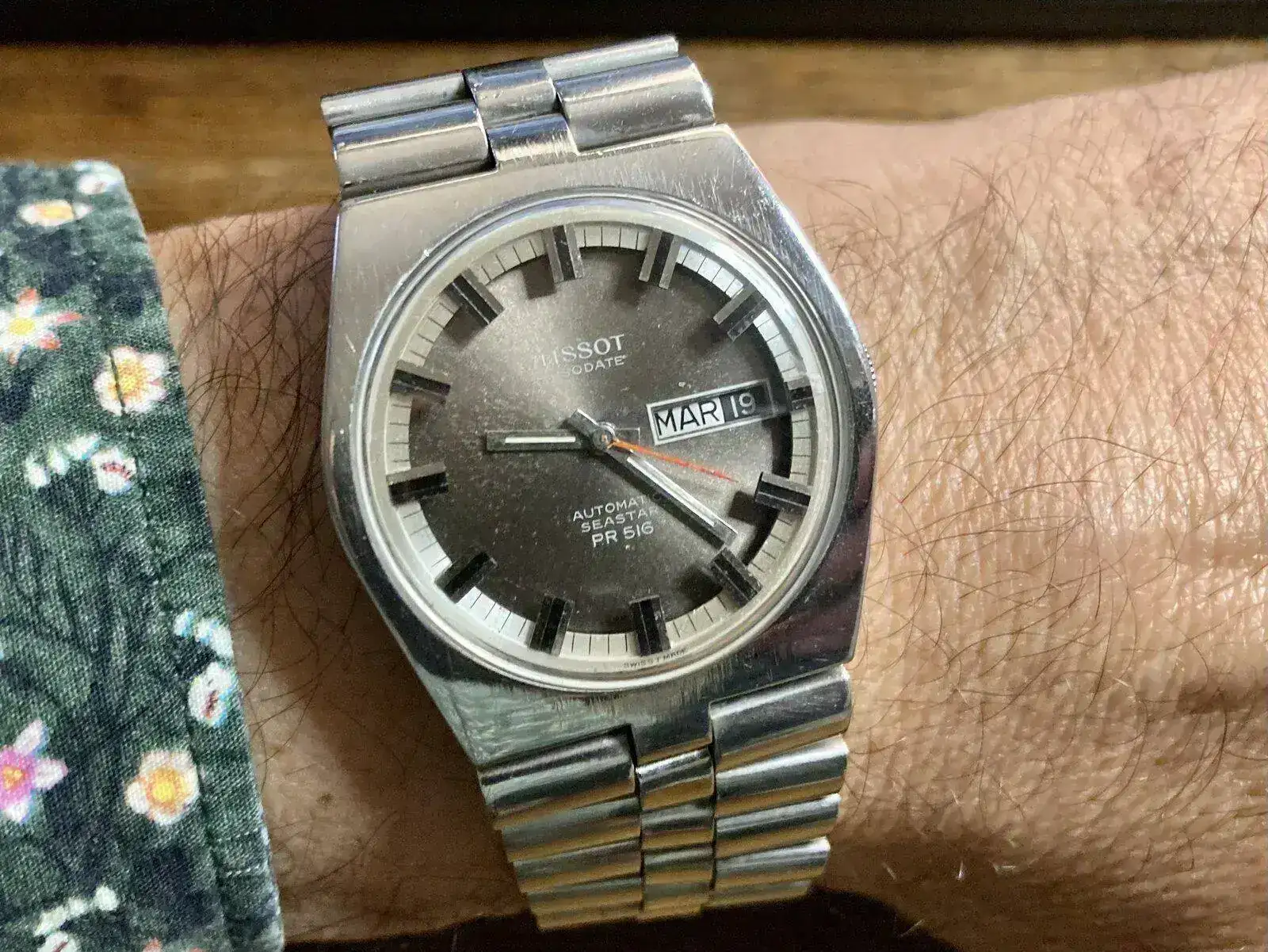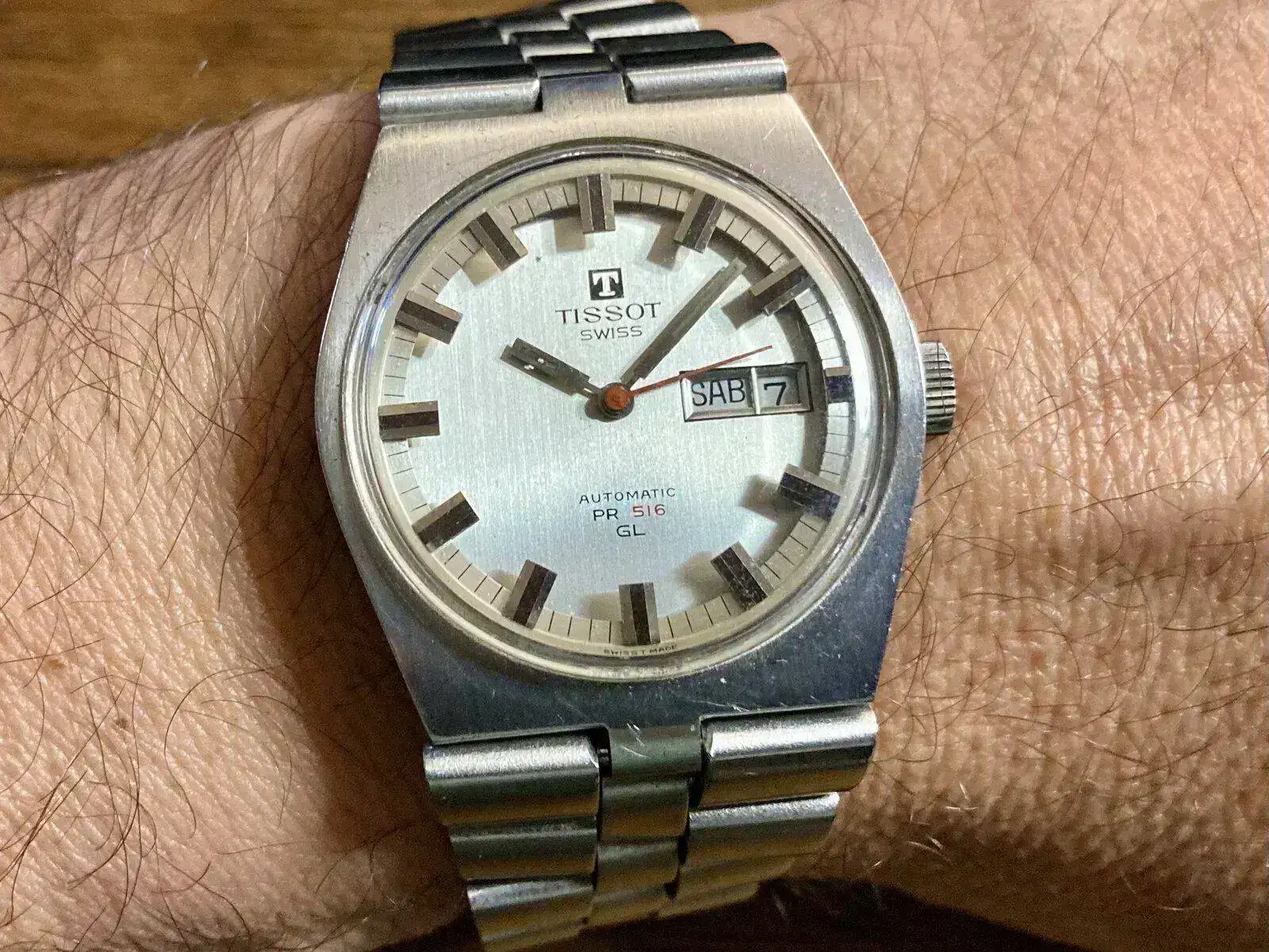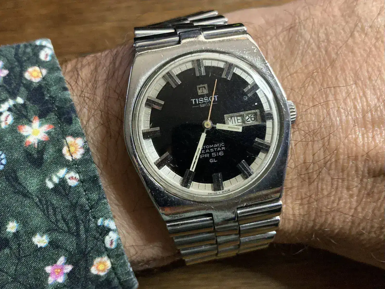 Los míos son de 33, pero así todo para la época (los 516 de dama por ejemplo se quedaban en los 28mm) era bastante. Los 44 de la colección de chico eran mucho incluso para lo que se estilaba entonces en relojes deportivos. Aunque también hay que tener en cuenta que es un reloj sin asas, lo cual hace que la pieza no sea tan exagerada como en principio se puede pensar al ver el diámetro.