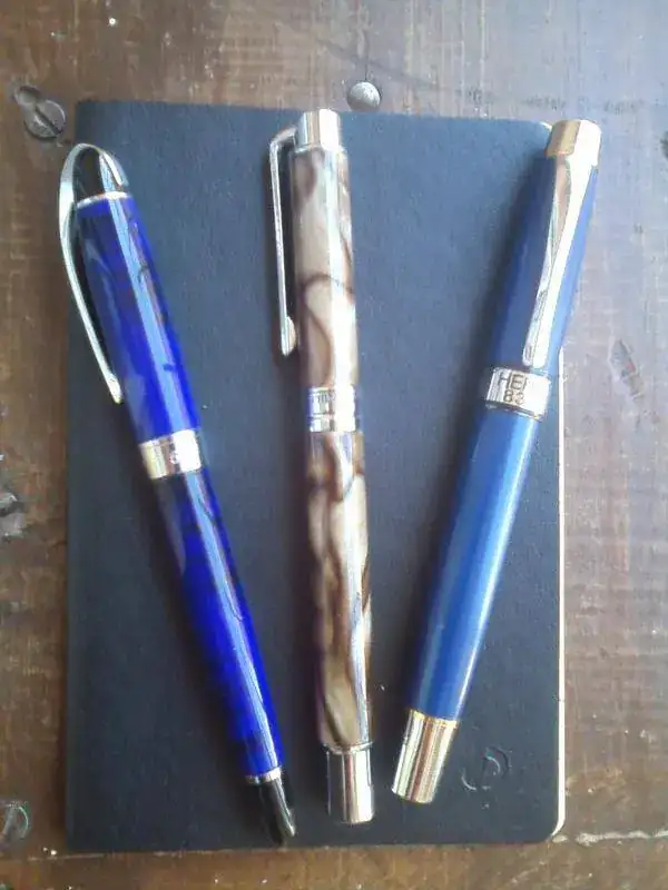 Cogí la del medio de la foto, la color crema jaspeada, Huashilai parece que se llama o Guasilai, que no la conoce ni la madre que la parió,pero vamos si es que tiene guasa valga la redundancia, le puse tinta Poussière de lune que es de mis favoritas...vaya plumín suave pero suave de verdad, sigo escribiendo igual que con la otra y al rato me la enganché en el bolsillo de la camisa, porque ya sabéis que yo llevo una pluma, las demás se quedan en la caja, no llevo estuches ni nada. Al pasar un rato echo mano a ver si se ha descompuesto o se ha roto el plumín, pues no, igual de suave. La siguiente es una Hero 832 y la misma historia.