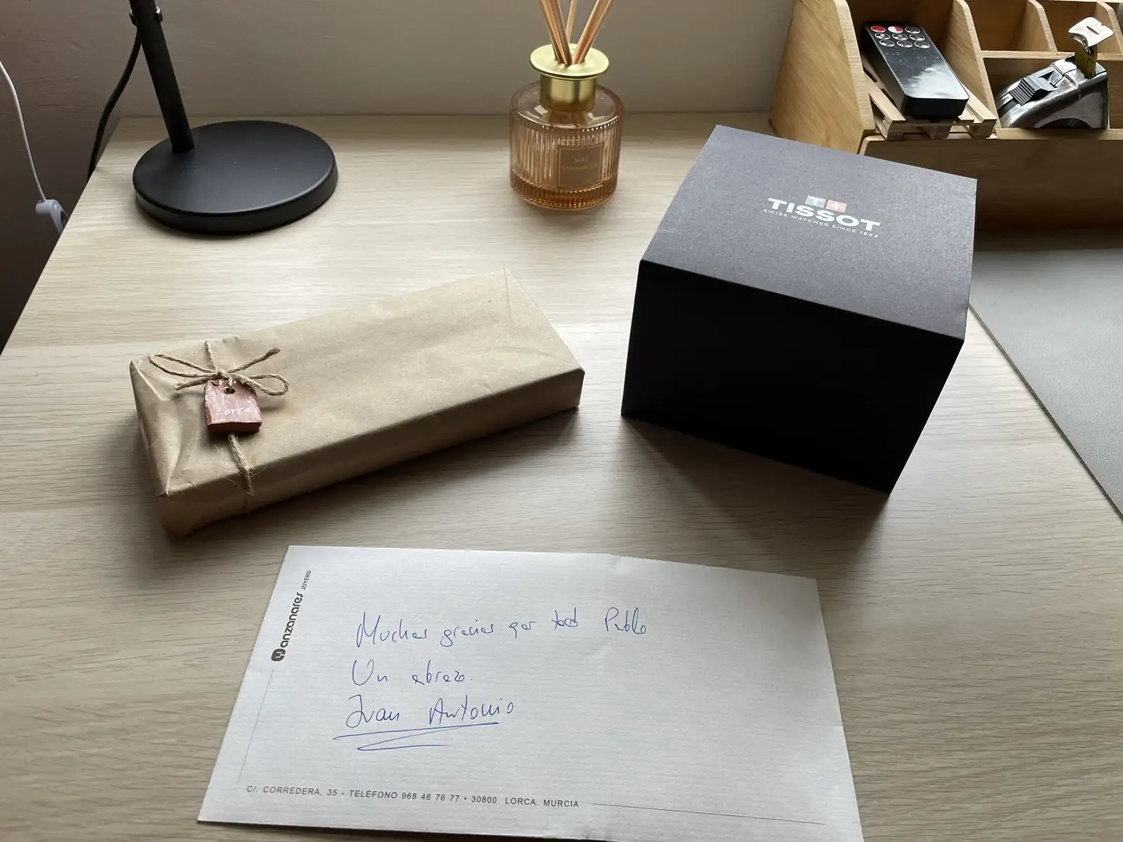 Por último me gustaría dar las gracias a Manzanares Joyeros por el trato recibido, una atención exquisita por parte de Juan Antonio, en tiempo récord de conseguir el reloj ya que debían pedirlo a fábrica ( en una semana en casa) y un detallito de cortesía, porque a nadie le amarga un dulce.