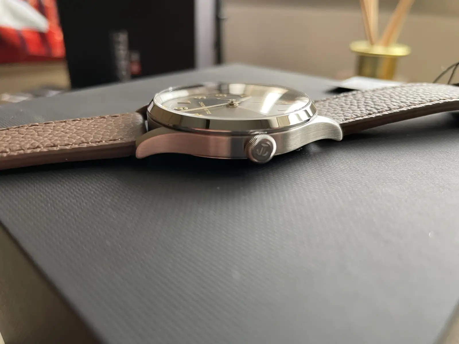 Qué preciosidad más preciosa!Hace tiempo que no abro un hilo y hoy lo hago para presentar mi última incorporación. Desde que fue presentado por la marca me llamó la atención, ya que aparte de ser bastante bonito en mi opinión, también en ficha técnica tenía unas especificaciones y medidas muy interesantes. Como comentaba anteriormente llevaba tiempo buscando un vintage con esfera oscura, lo cual es bastante difícil porque o son demasiado pequeños o la esfera es repintada o las condiciones no son las mejores y justo van y presentan esta novedad que cumplía con lo que buscaba.