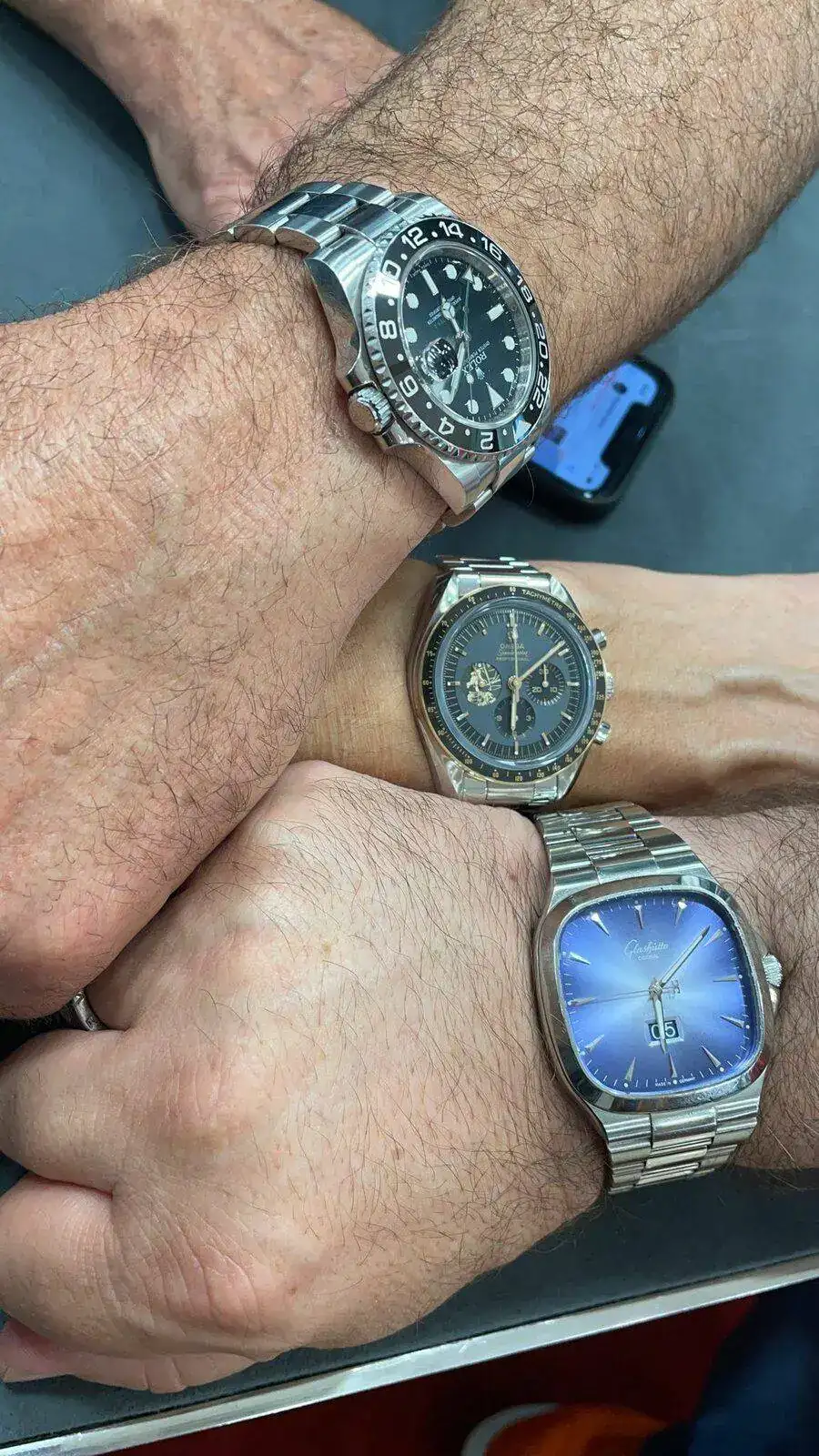 Y la ultima foto , de los Tres Mosqueteros, mis compañeros de " penas " de esos días , ( que por cierto tampoco pasamos hambre ) y los relojes que nos acompañaban el día de la .compra .