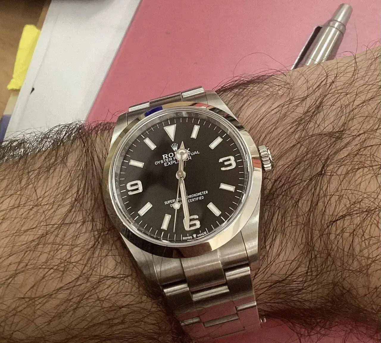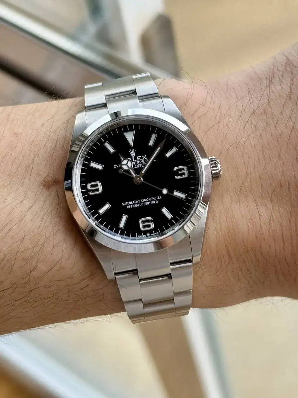 Dale un tiempo y verás como te conquista! Para mí, el de 39 le veía mucho bisel y mucha esfera “ vacía “.Interesante experiencia, mi muñeca es de 17, acabo de comprar un explorer de 36 pero todos los que tengo son de 40/41 (un OP y un SUB ) y no termino de verlo, siempre tendré dudas sobre el 39mm pero leyendo tu experiencia me reafirmo, y me quedo mas gusto.
