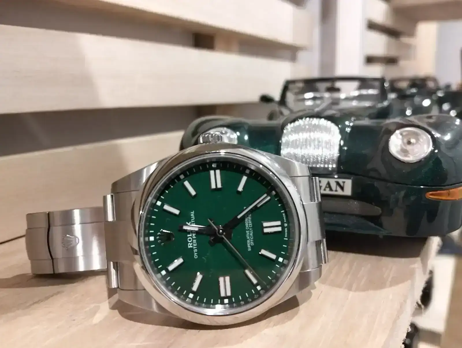 Lo compré de segunda mano, pero estoy apuntado para el de esfera plata y llevo 18 meses.Precioso, me encanta en verde, he iniciado mi búsqueda de uno como este, ¿Puedo saber si tardaste mucho tiempo en conseguirlo, en caso de que fuera a través de un concesionario? Gracias