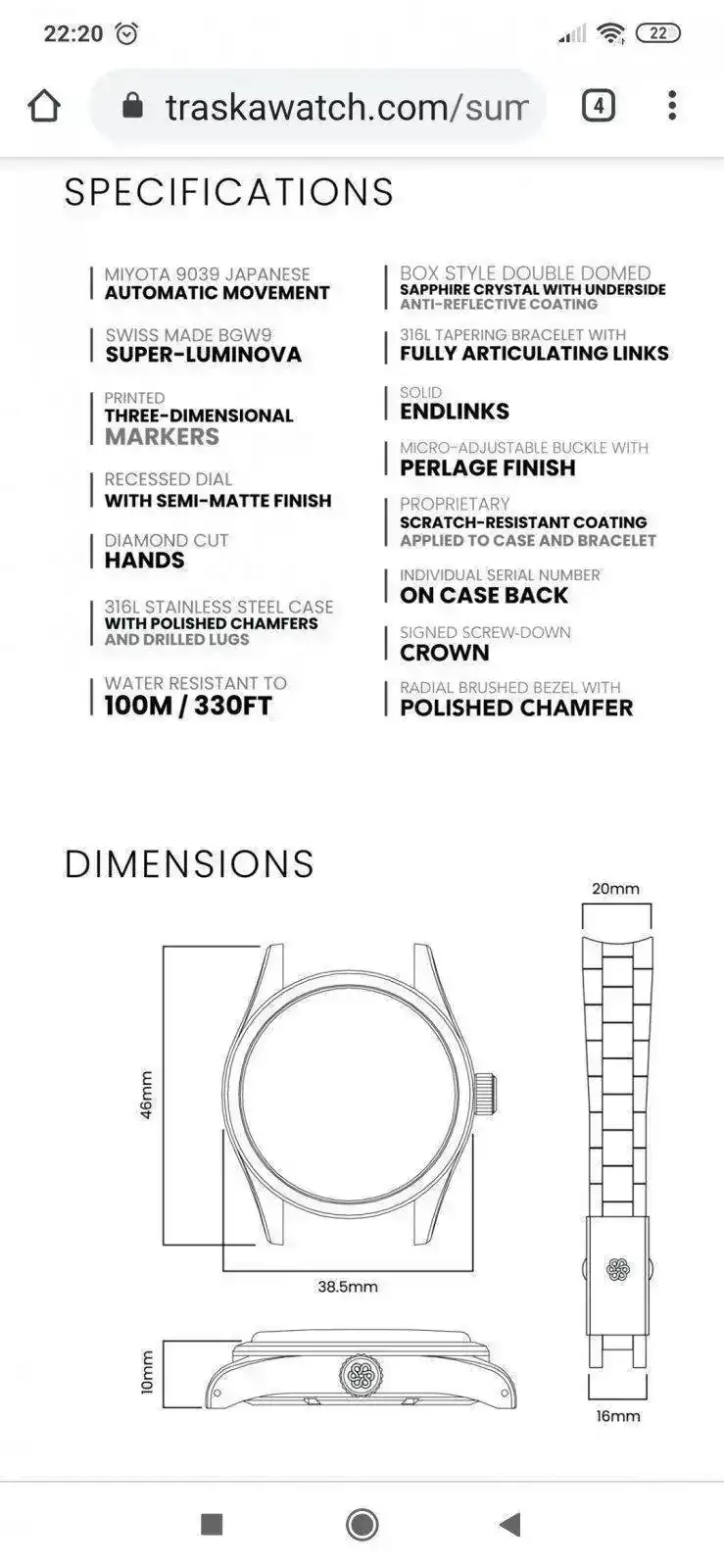 Pero parece que al no tener corona roscada, sus 100m. son algo de dudosa fiabilidad.