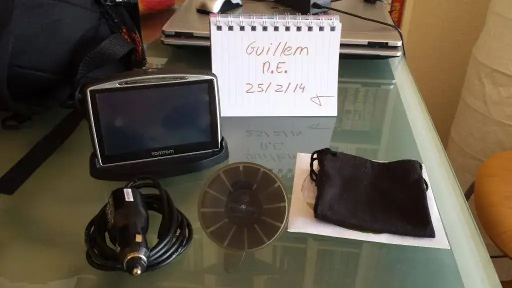 Incluyo la base dock de conexión a PC, cargador de coche, ventosa de soporte, 'fundita' de cortesía, cd de instalación de tomtom home, con lo que podréis comprobar que está actualizado. Comentar que con tomtom home se actualiza la posición GPS y puedes bajarte correcciones de mapas desde la comunidad de Tomtom Home.
