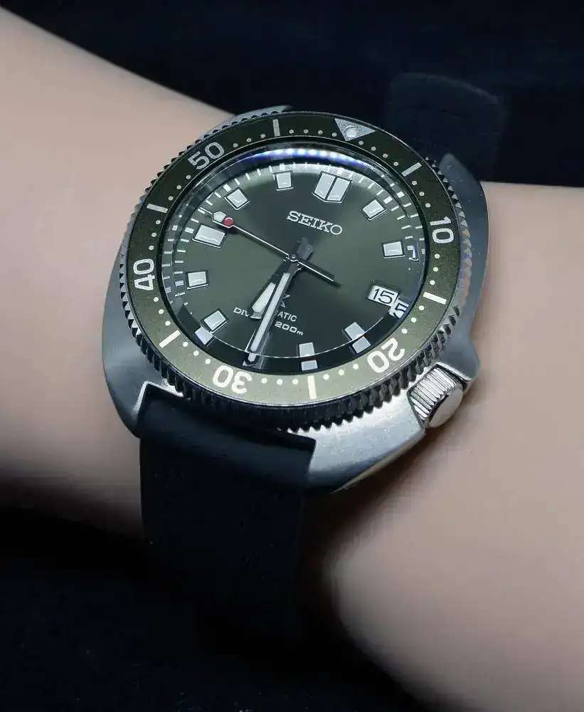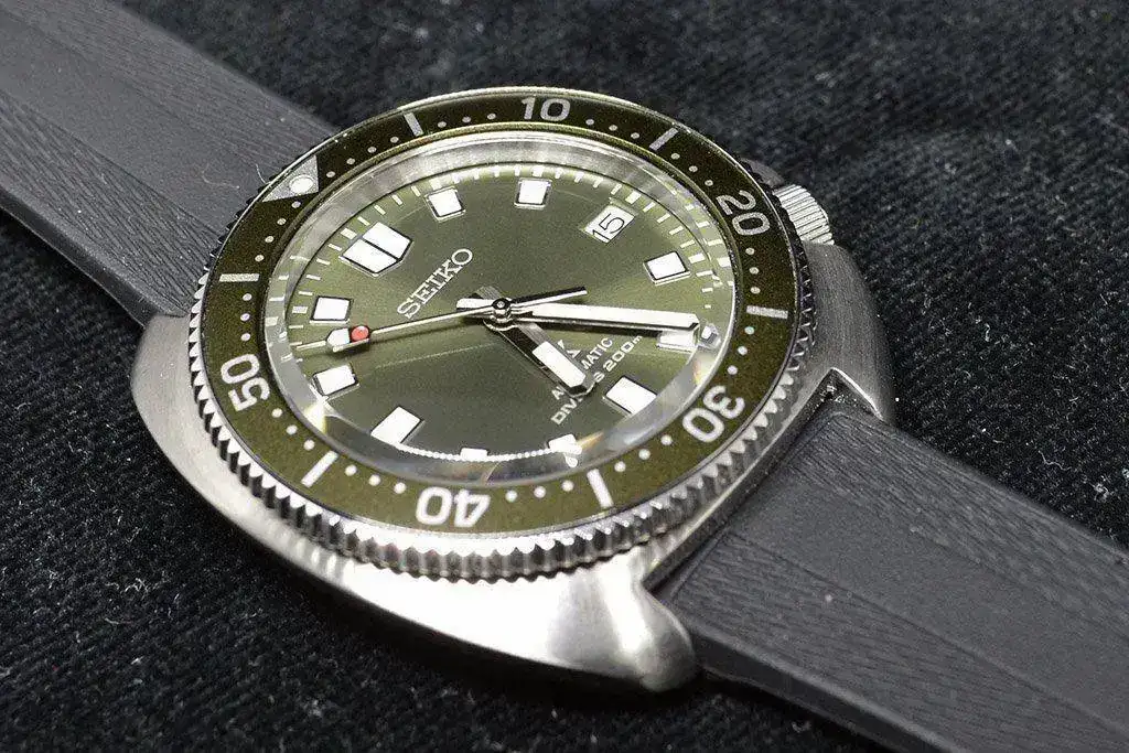 esta vez con una preciosa esfera y bisel verdes y con correa de caucho color negro de extraordinaria calidad.