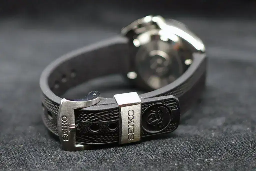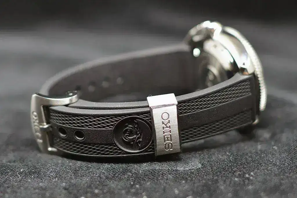 Correa de caucho con cierre por hebilla firmada Seiko.