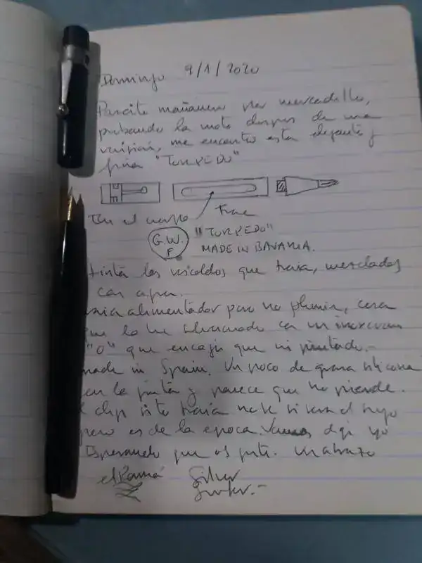En fin rebuscando en una maleta llena de tiestos tiesteros un capuchon con un clip de los de antes me encontro asi que me dije a ver si esta el cuerpo del delito y tambien me encontro, lo que no encontre fue el plumin pero que ya en casa le encontre uno que encajaba a la perfeccion "made in Spain"