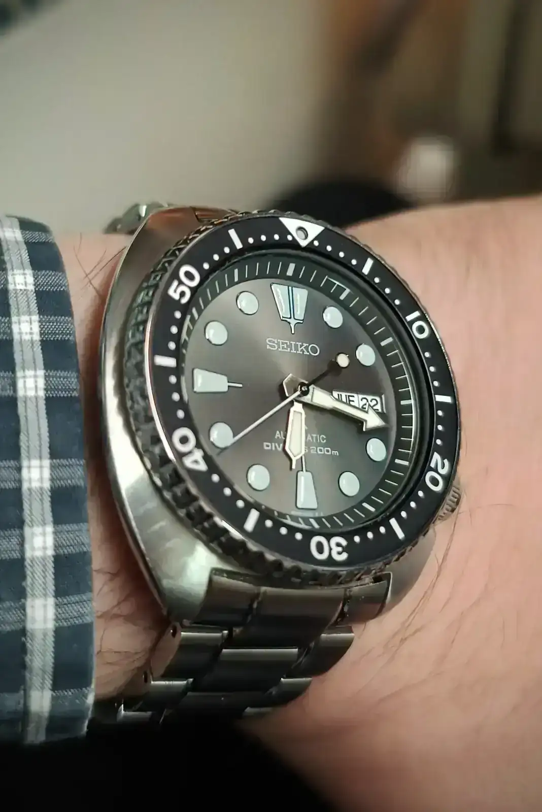 Un año más tarde ya tenía activado el instinto de depredación, y tenia en mente subir de nivel mi colección; quería un diver de ésta marca. Con la coincidencia de un vídeo devastador de los compañeros de atrapando el tiempo lo tenia clarísimo: quería un tortuga, pero quería que me quedase aceptablemente bien, y entonces barajé el tortoise y quizá un slim willard, pero el sobrecoste y la mala fama de los 6r35 pesaban bastante.