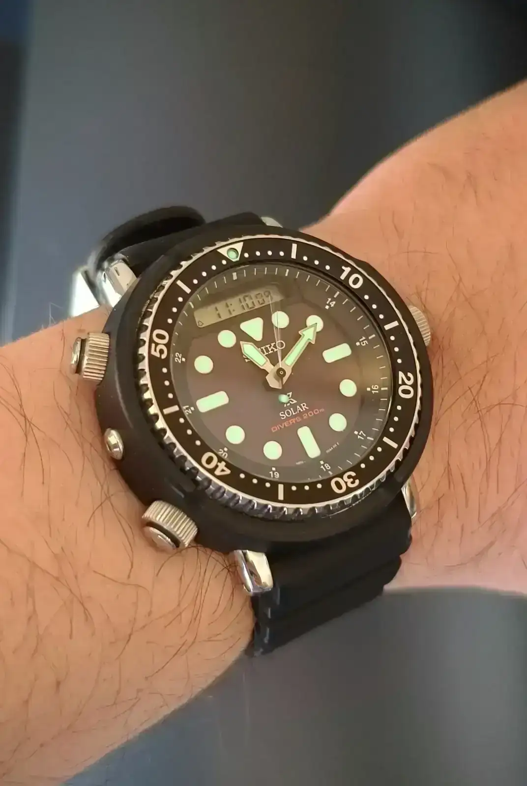 El diseño utilitario me turboflipa, además veía en las líneas orgánicas de la caja y en los índices del dial, un puntito de cotidianidad que rebajaba la presencia de reloj herramienta, a reloj de todos los días; seguramente ésa sea una buena parte del éxito de los diseños de seiko, o al menos para mí.