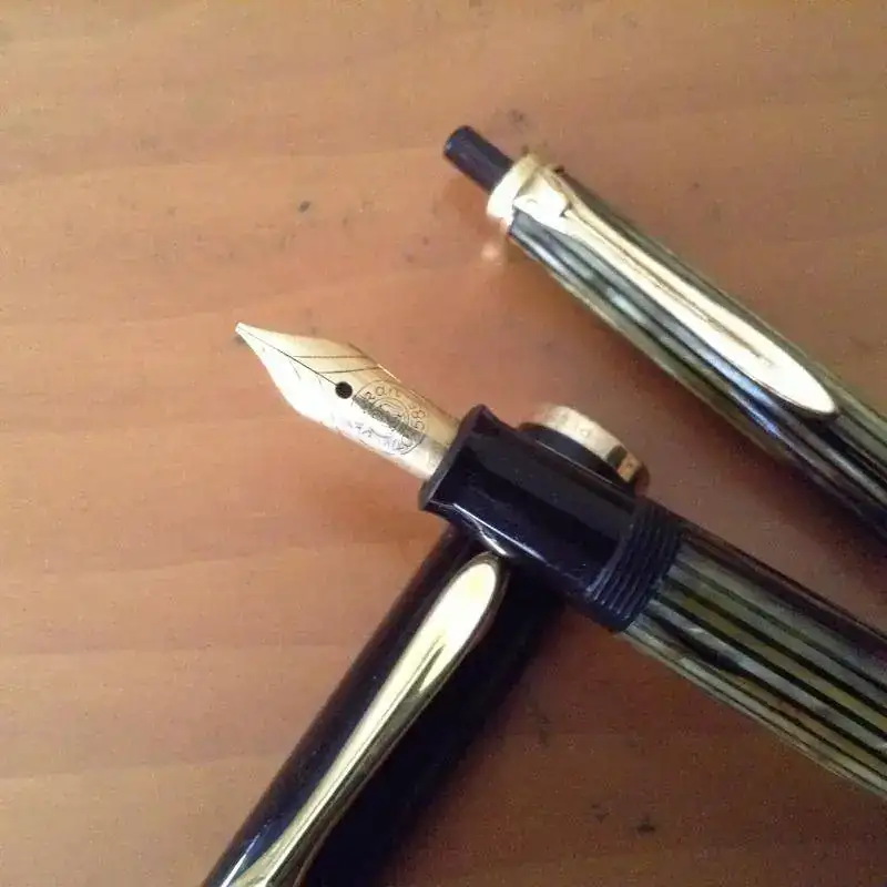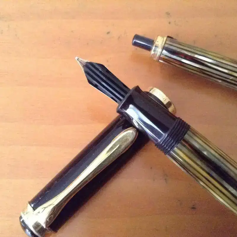 Pluma 400N con plumin de 14 k y punto entre fino y medio. Acabado tortoise.