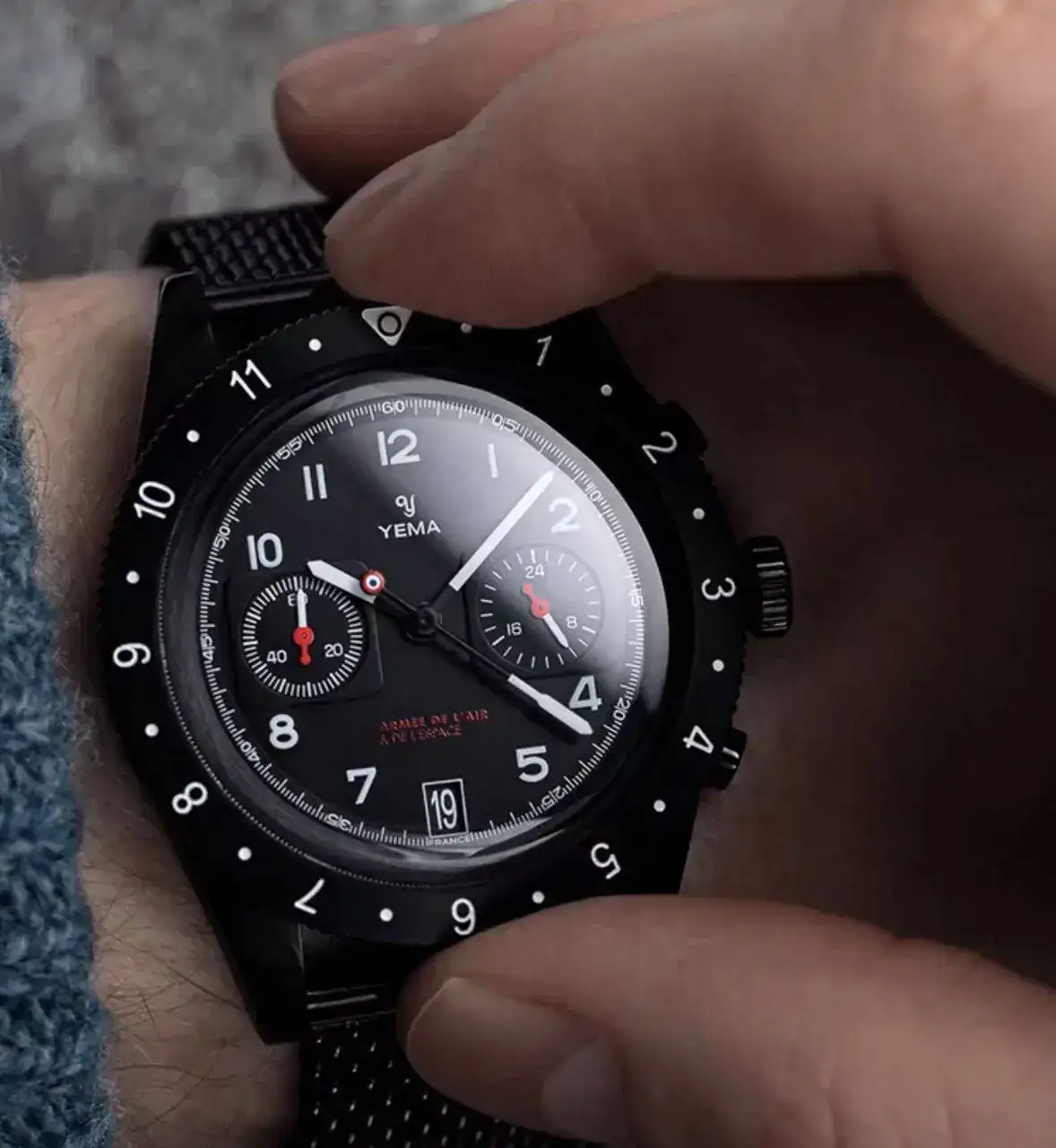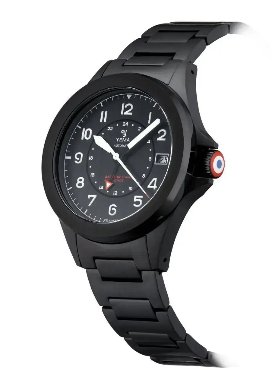 El primero es Yema Flygraf French Air, es automático, GMT y el precio es de 1300€. Reloj de la Fuerza Aérea Francesa.