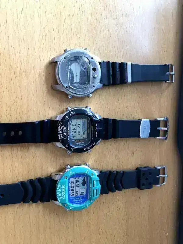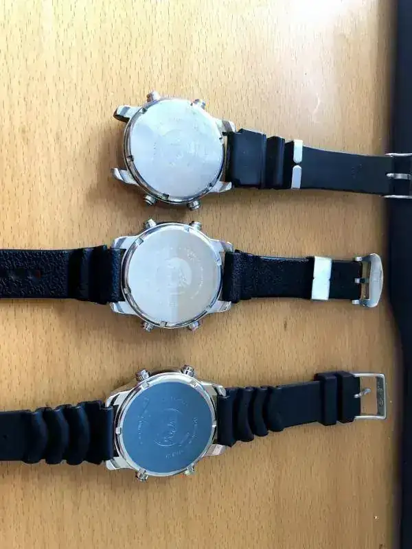 En la foto se ven 3 el primero ya paso a mejor vida y le guardo prácticamente de recuerdo ,el del medio lo uso bastante aunque para vestir y el 3º es solo la carrura del reloj ,este ultimo no lleva el modulo de la maquina pero se encuentra en estado NOS.