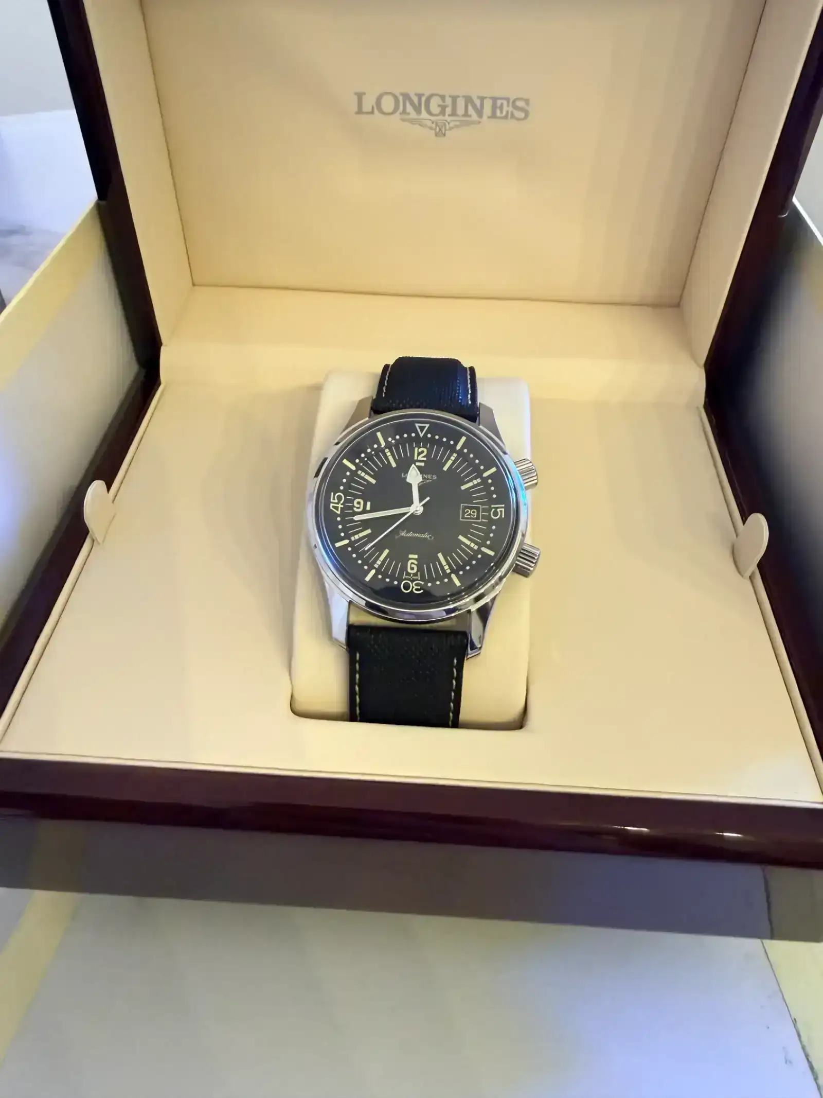 Longines Legend Diver: Años y años con ganas de tenerlo, pero no me terminaba de lanzar a por él, pero se me cruzó en una subasta en Buyee y lo compré un mes antes del viaje. Hablé con el hotel para que me recepcionaran el paquete una semana antes de mi llegada. Fue comprado en Japón en septiembre de 2023, por lo que es de la linea moderna con el L888 de 72h de reserva y espiral de silicio y con garantía vigente. Estuve usándolo desde que lo recogí y, tras una semana, me ha adelantado 4 segundos, por lo que va clavado.