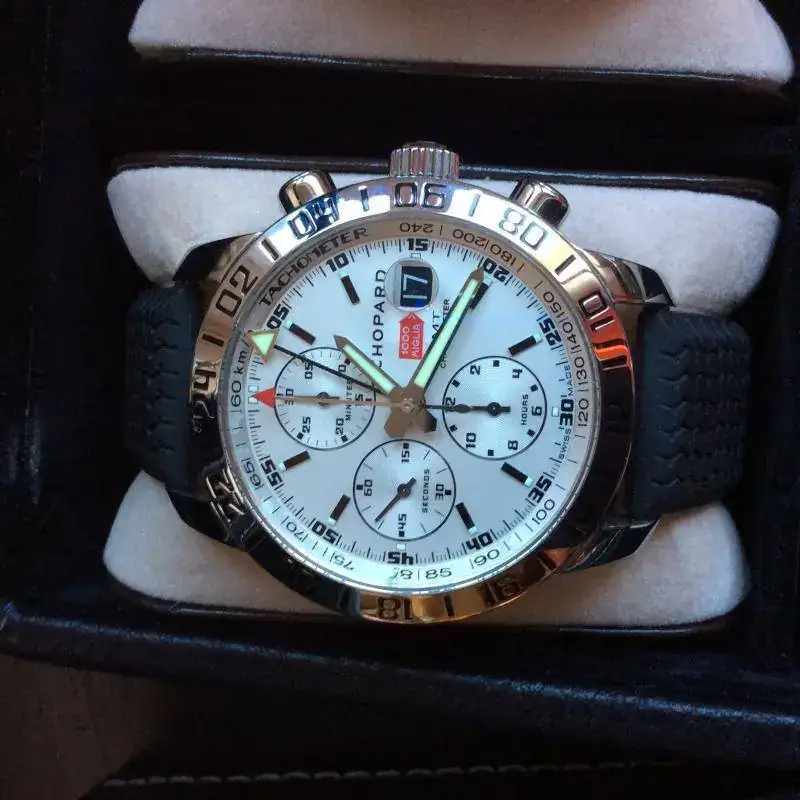 Chopard Mille Miglia GMT: Lo compré como consecuencia inmediata a mi visita a la manufactura de Chopard en Fleurier. Es un reloj espectacular, no pasa desapercibido donde vayas. Es el mejor para el eventos veraniegos de "camisa remangá" y para cronometrar la cocción de la pasta. El dial es para pasarse un año buscando detalles. Super-preciso.