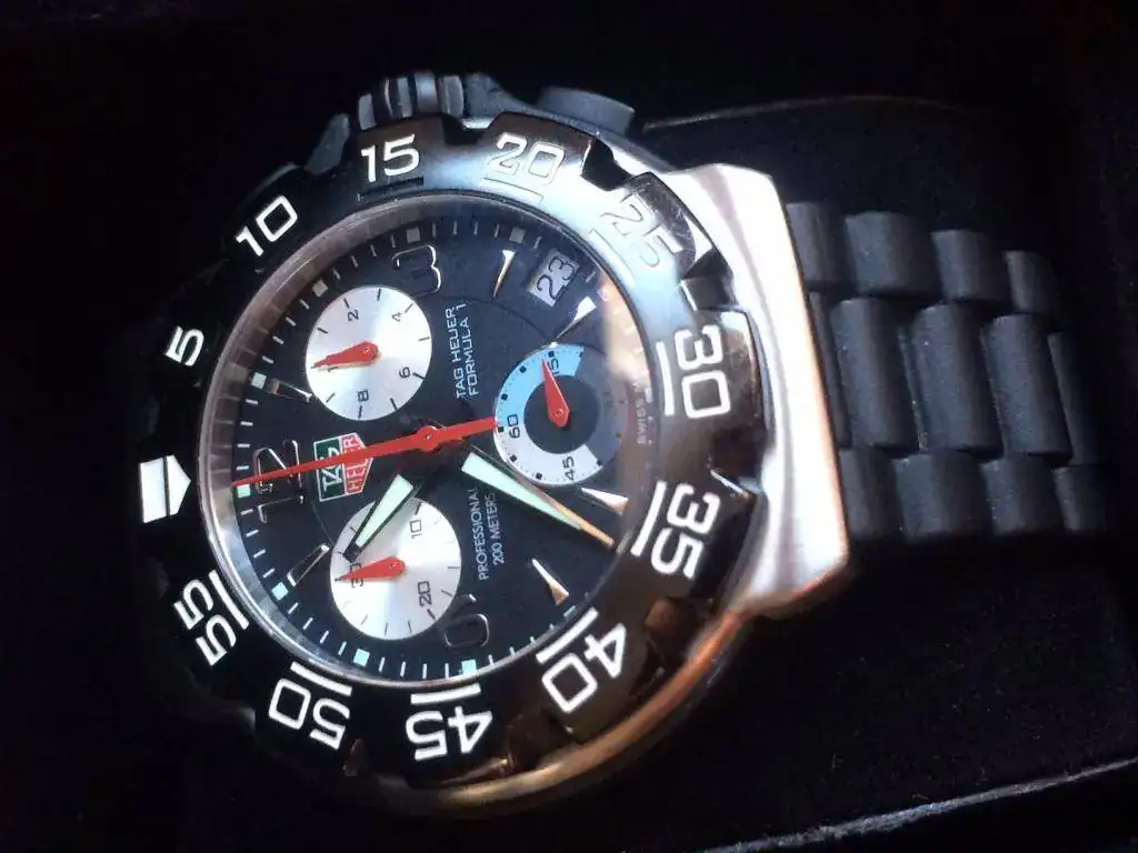 Tag Heuer Formula 1: Comprado para ir los "viernes casual" a la oficina y para el verano, y para hacer deporte. Fue mi segundo reloj durante años. Restaurado para poder aguantar 100 años más. Ya casi no me lo pongo.