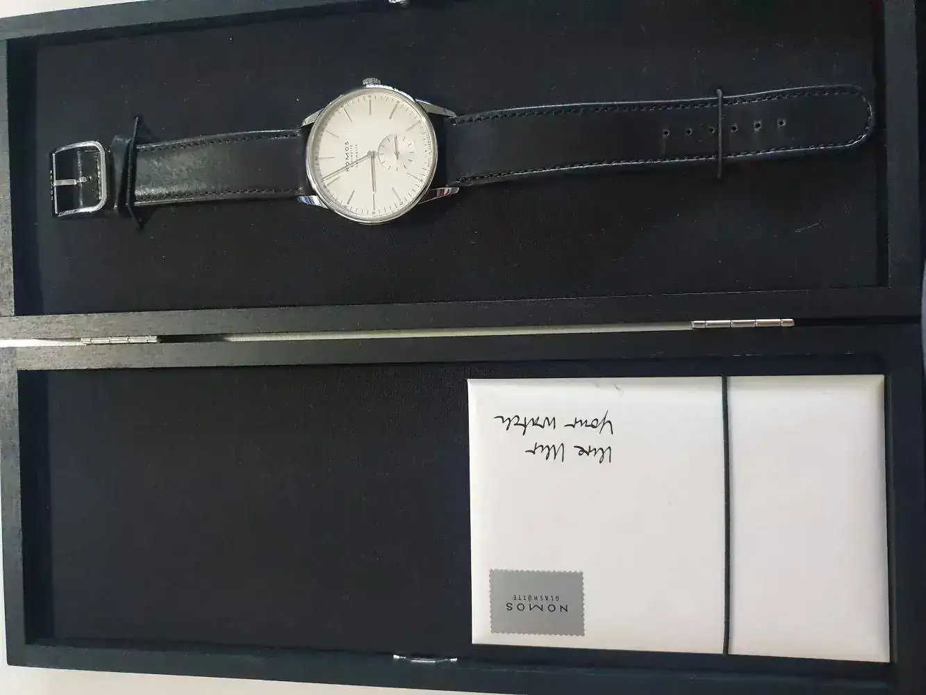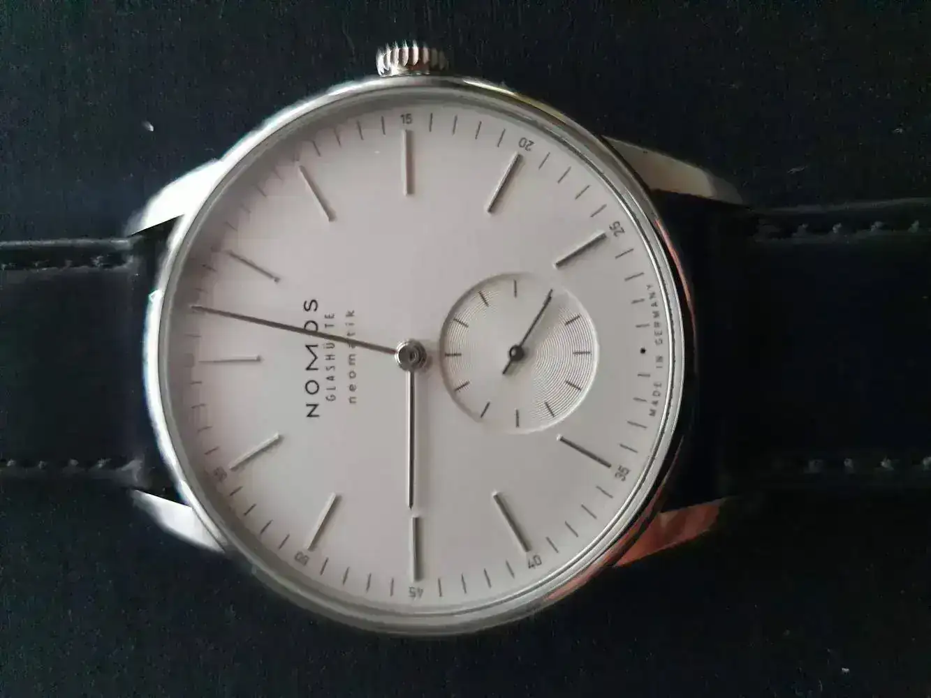 Y di con los Nomos. La estética Bauhaus me gusta, así que miré Junkers, Junghans, Sternglass, ... pero el que me gustó realmente fue el Nomos Orion. La duda estaba entre el 38mm blanco manual y el 39mm blanco automático.
