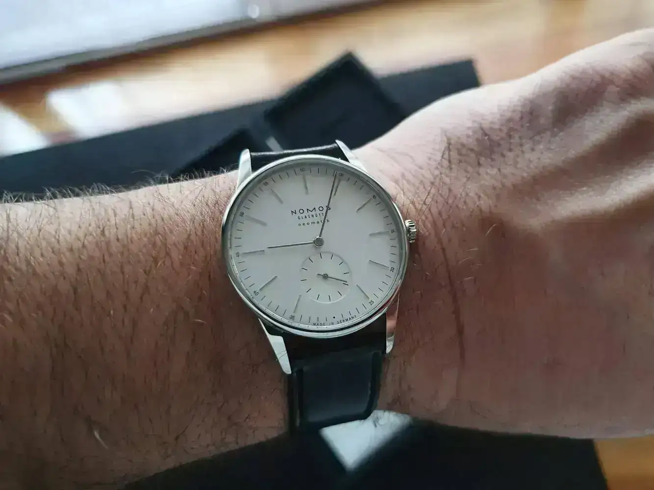 Bueno, después de todo este rollo, ayer fui a por mi Nomos y aquí os dejo unas fotos. Al final, me decanté por el Nomos Neomatik de 39mm.