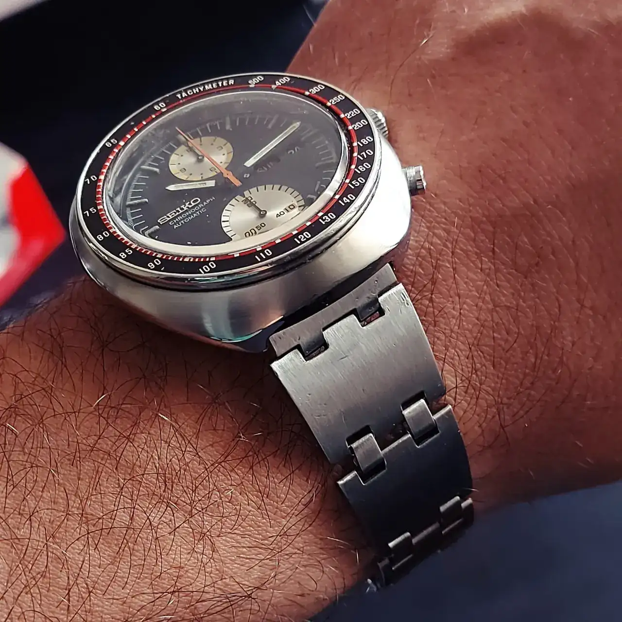 Y un SEIKO 6138-0011 un auténtico tanque le cambie el brazalete original de granos de arroz por este tipo lopster también muy setentero. (Conservo el original)