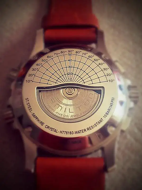 Una parte que normalmente no vemos de los relojes, son sus traseras, bien vistas o ciegas, tienen algo que al menos a mi me hacen a veces querer más un reloj. Estaría bien que cada uno pusiera foto de la que de su colección le parece mas bonita o especial. Aquí va la mía. Oris Aquis date, con su masa oscilante en rojo.