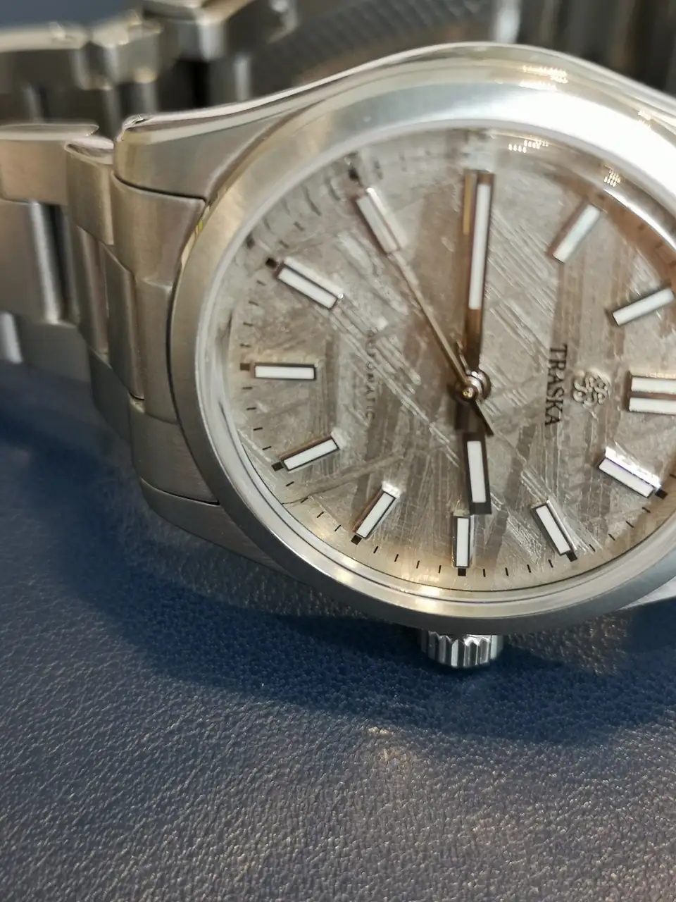 Estaba en ello, sin terminar de decidirme entre la esfera azul (tengo muchos) o la esfera plateada (el contraste con las agujas) cuando, en abril, anunciaron una tirada muy limtada de 50 unidades con esfera de meteorito (50 en total, entre los 3 tamaños que ofertan). Esto despejó mis dudas y, estando muy atento, conseguí hacerme con la preciada pieza, que tenía que entrar en fase de producción y llegaría en junio. Debo decir que el stock se agotó en cuestión de horas, si no minutos.