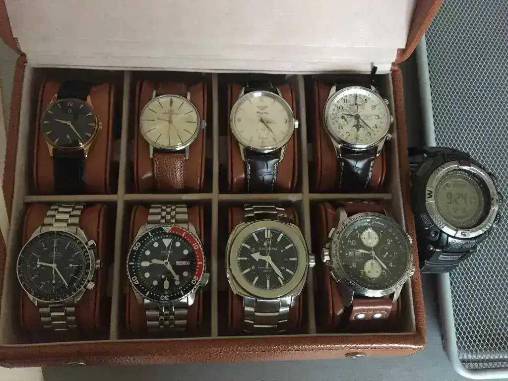 Y esta es mi colección. Para mí no es modesta, sino adecuada a mi presupuesto y pretensiones. Espero que con los años salgan y entren algunas piezas pero la veo una colección equilibrada aunque virando a clásica y con predominlo del reloj de vestir que es el que mejor va a mi vida diaria. Espero que os haya gustado.