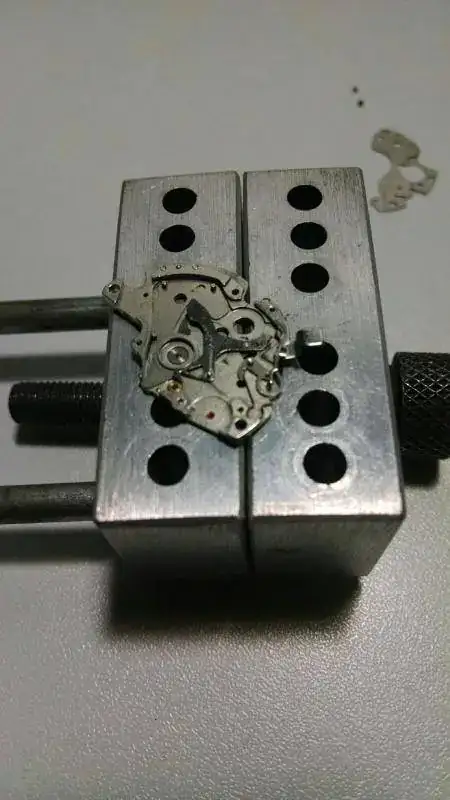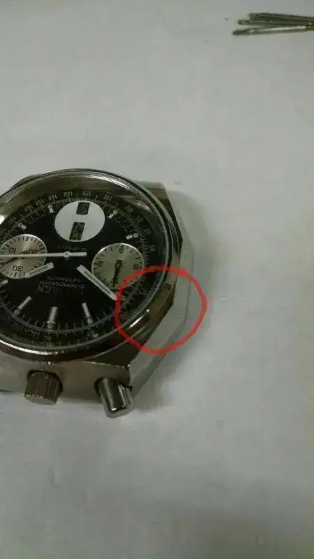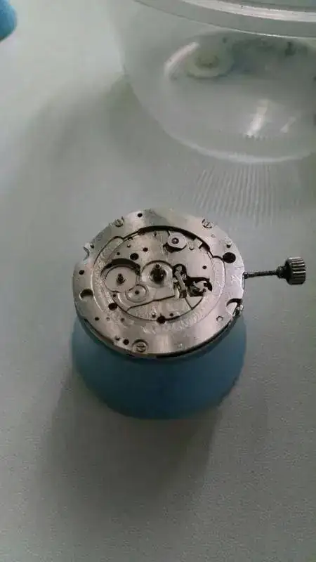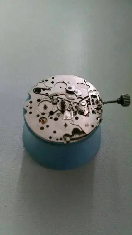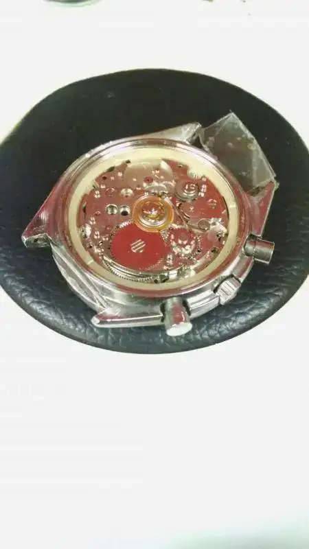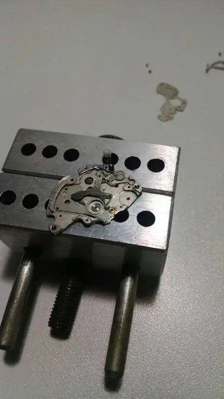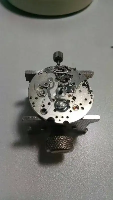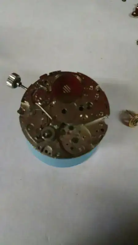 Al automático le faltaba el muelle de la rueda de minutos, el de regreso a cero estaba roto y el antichoque del otro lado estaba doblado.