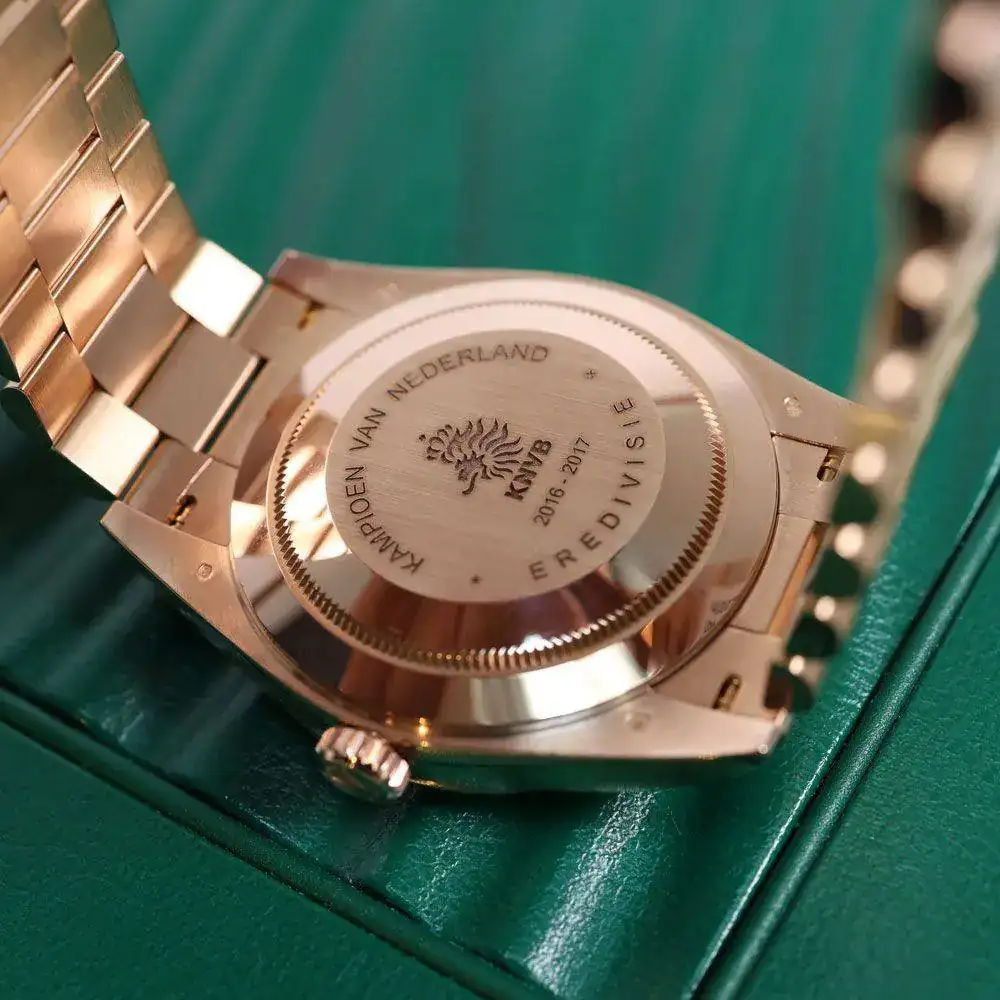 Campéon 1a división liga Holandesa ("Eredivisie") en la temporada 2016-2017 (con el Feyenoord), según el artículo, está gravado en el fondo del peluco.