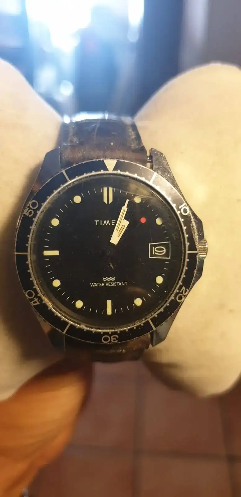 Hace un tiempo abri la caja de un timex vintage que tengo y no pude volver a cerrarla (supongo que me hara falta una prensa.) Asi que lleva como 6 meses en un cajon envuelto con una bolsita de plastico para preservarlo de suciedad y humedad y ahora que conozco la existencia de esos productos en las esferas vintage me preocupa bastante que mi reloj contenga tritio o demas sustancias, les adjunto una foto del reloj para ver si alguien me puede decir si contiene o no.. gracias por adelantado