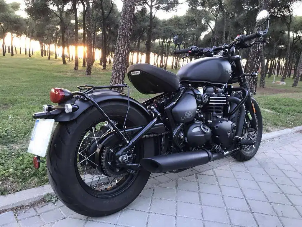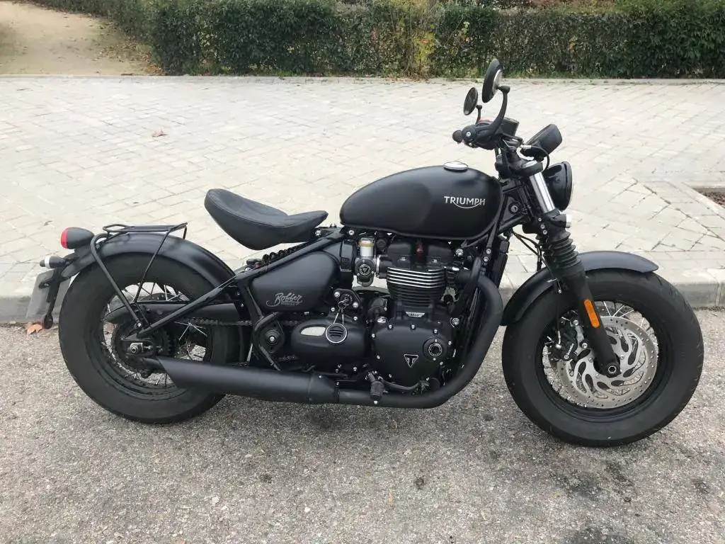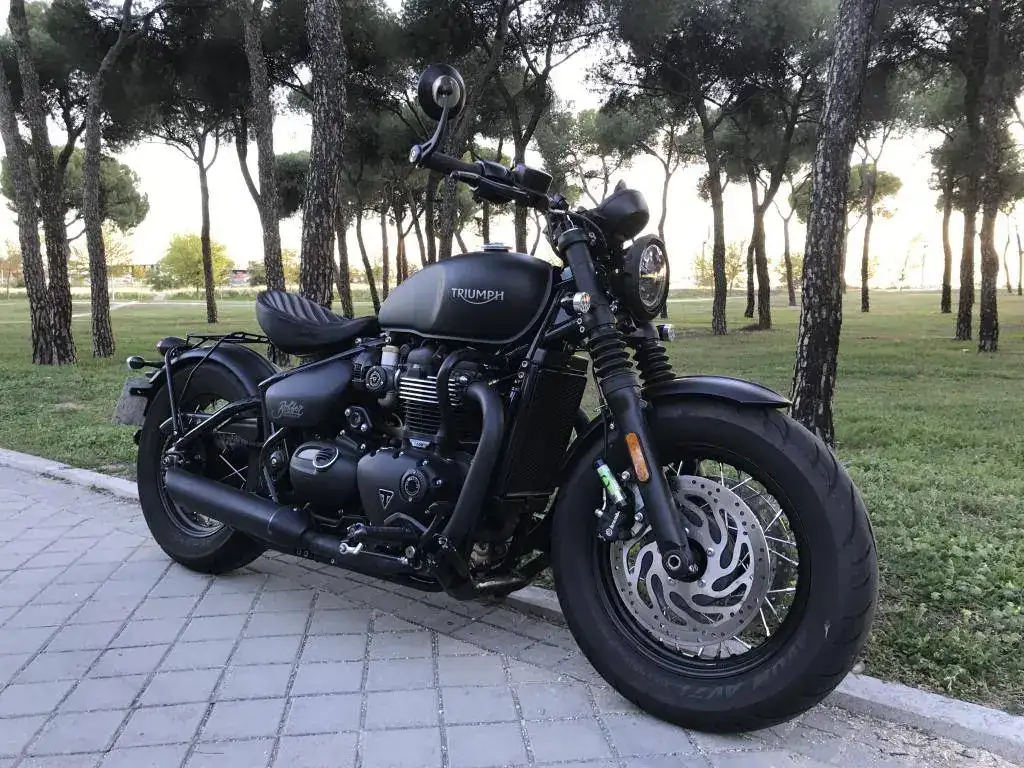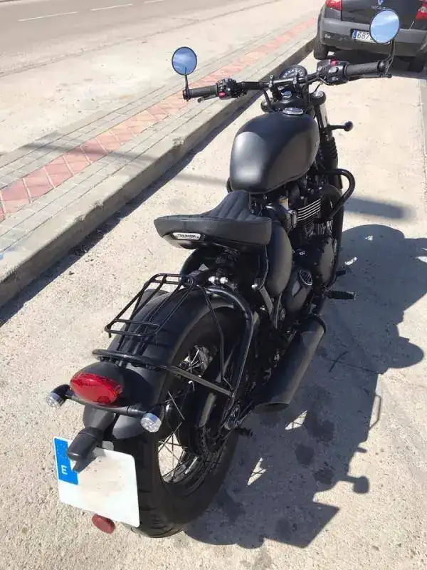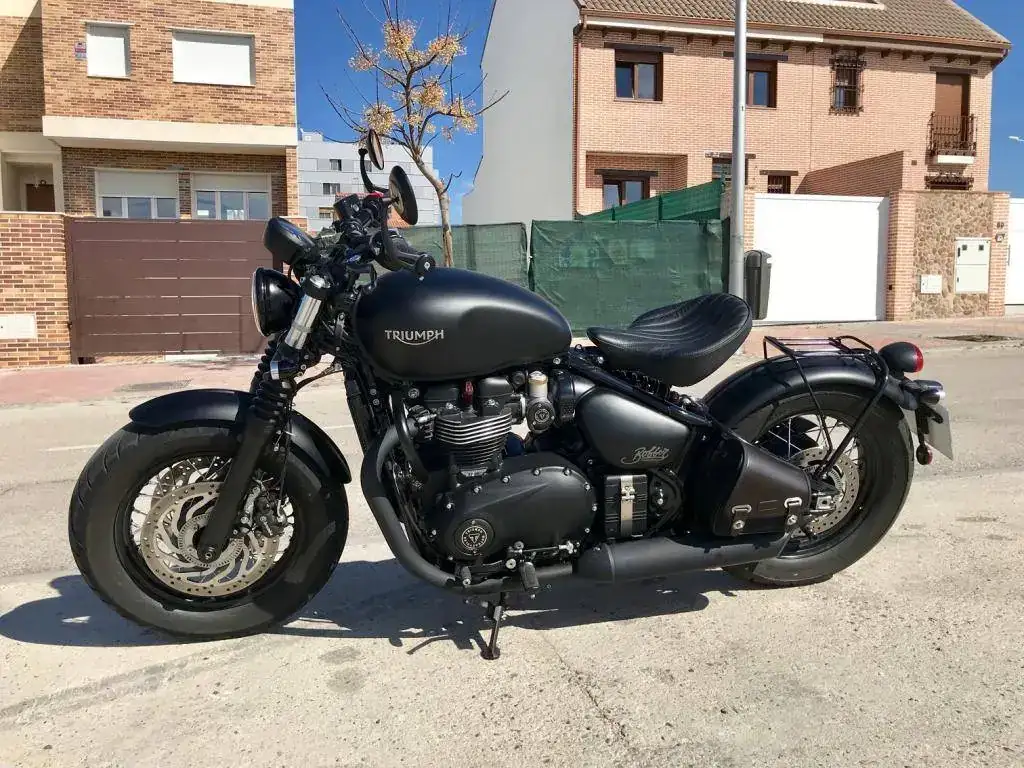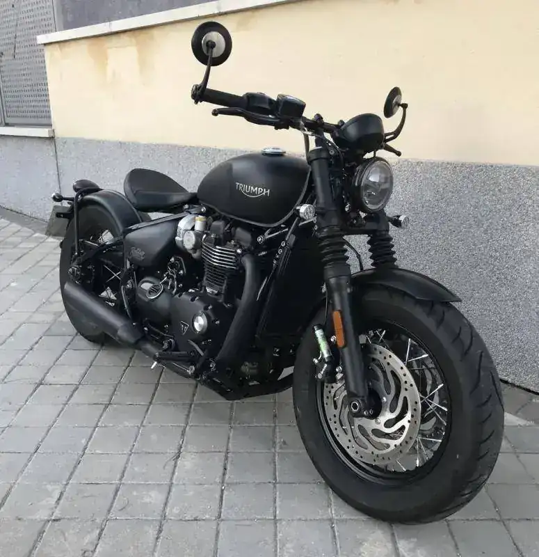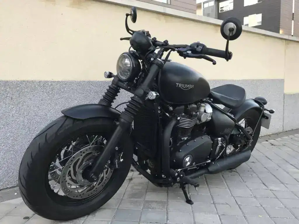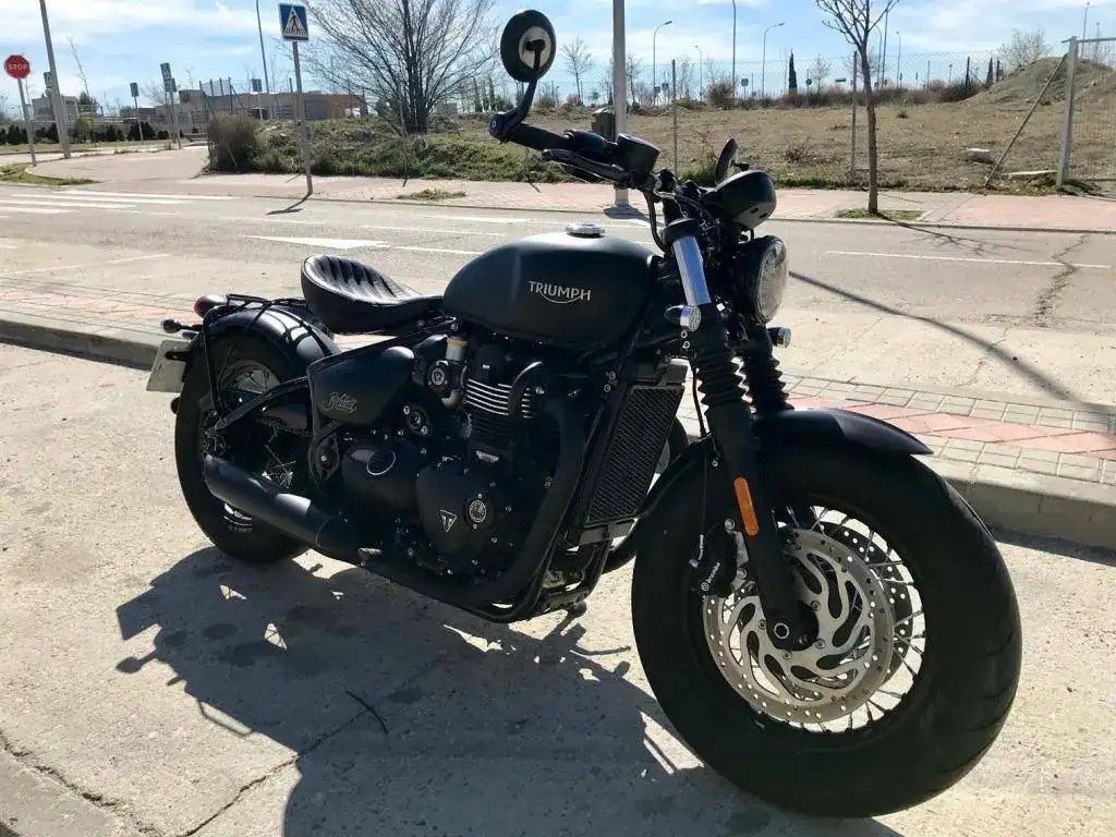 Se trata de una Triumph Bonneville Bobber Black color negro mate prácticamente como nueva.