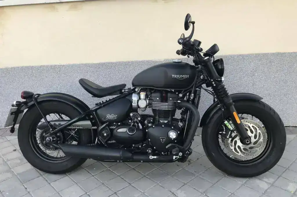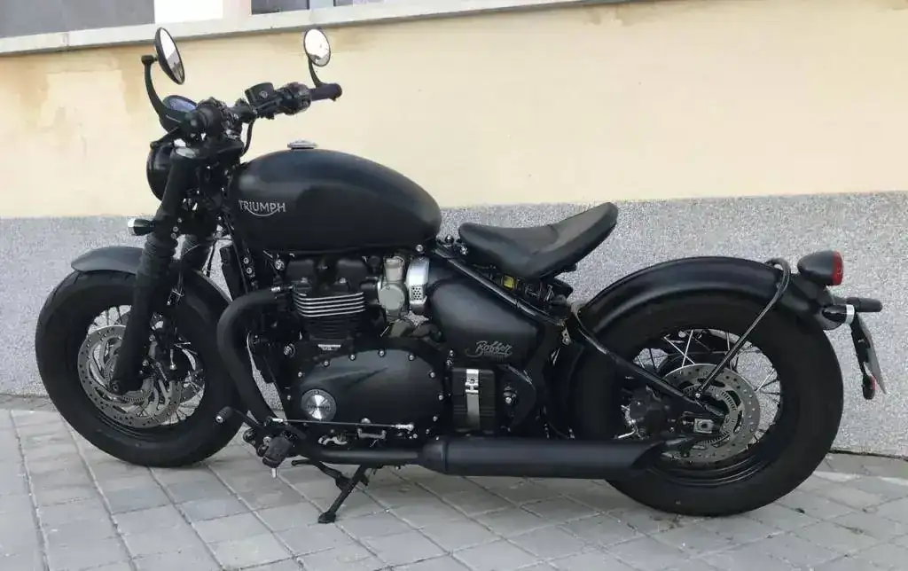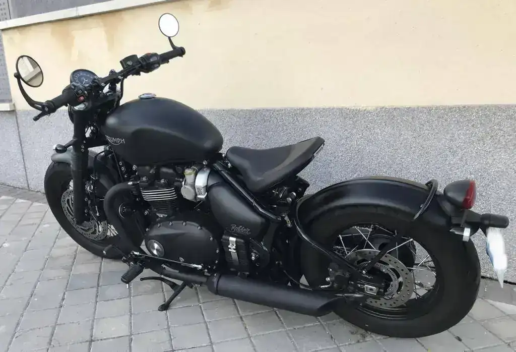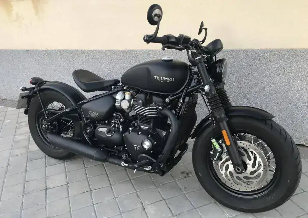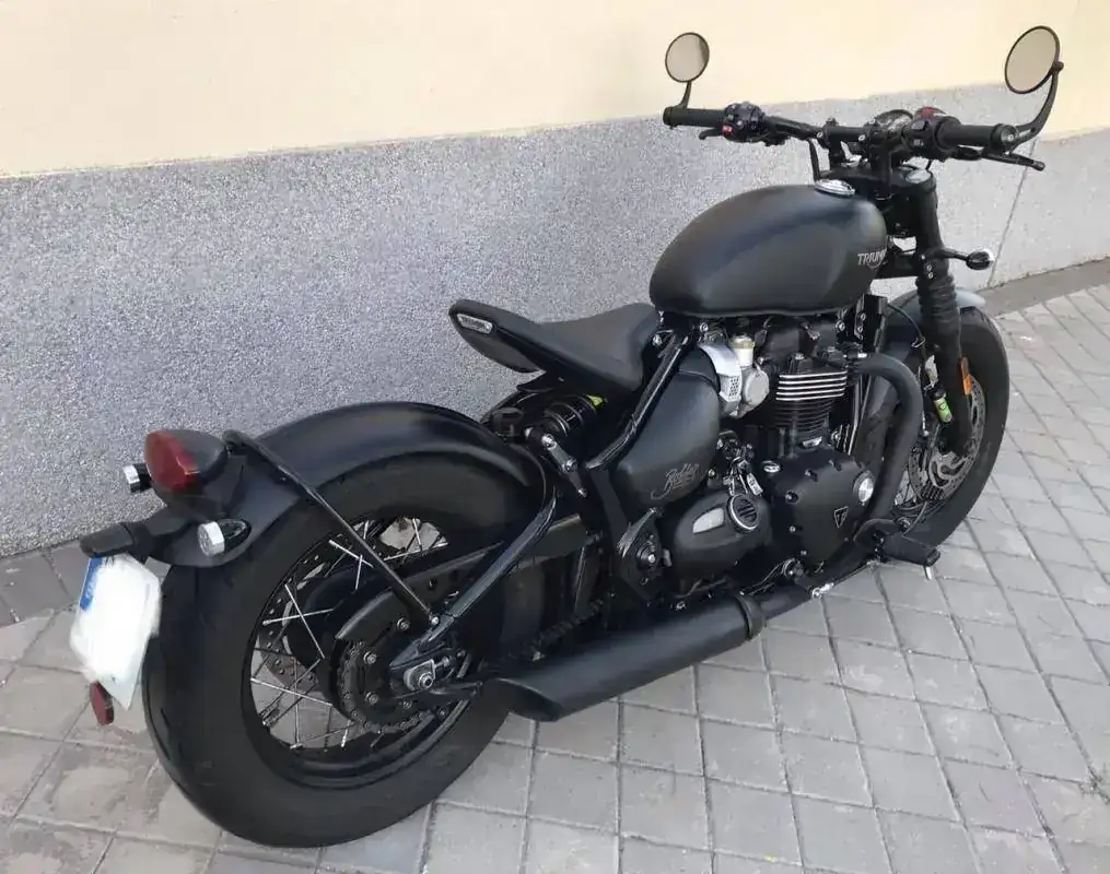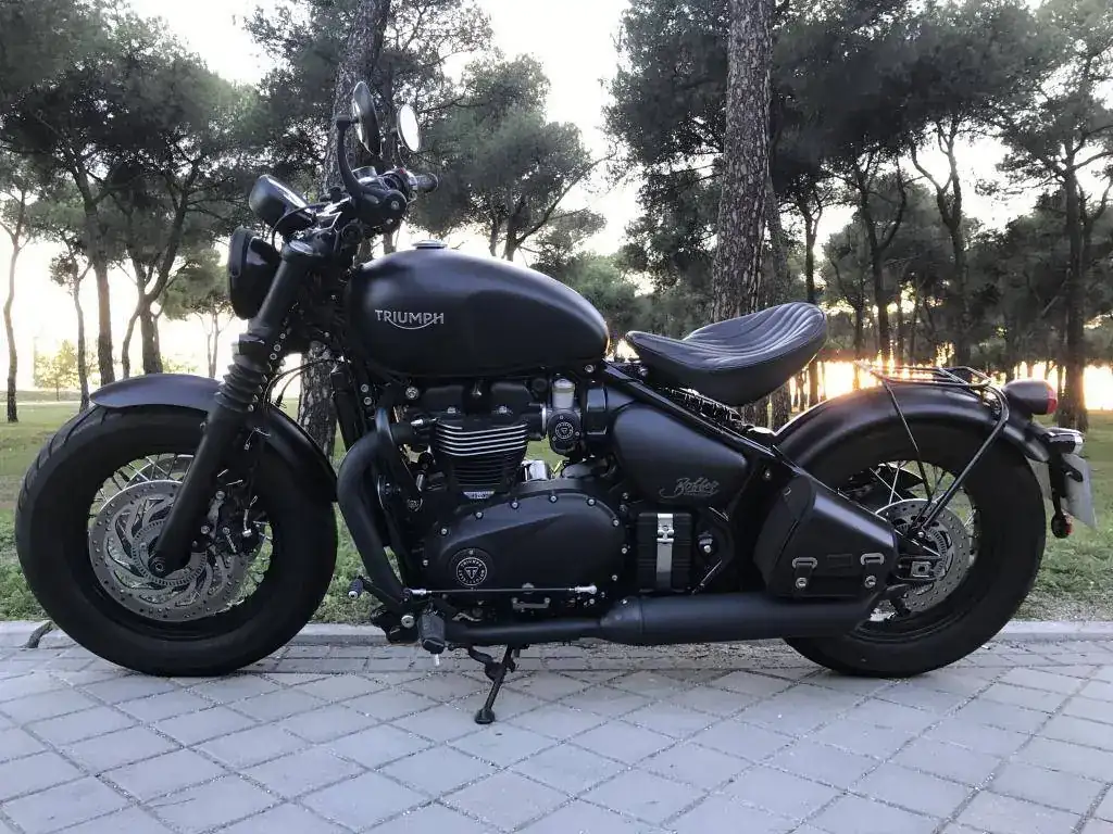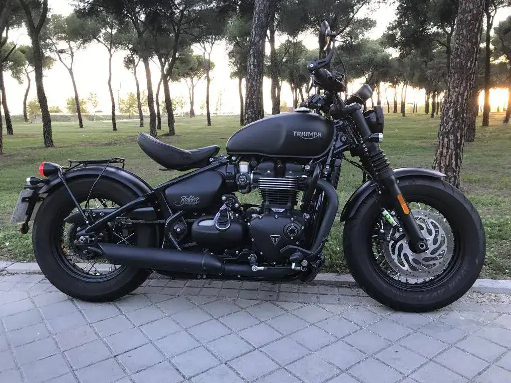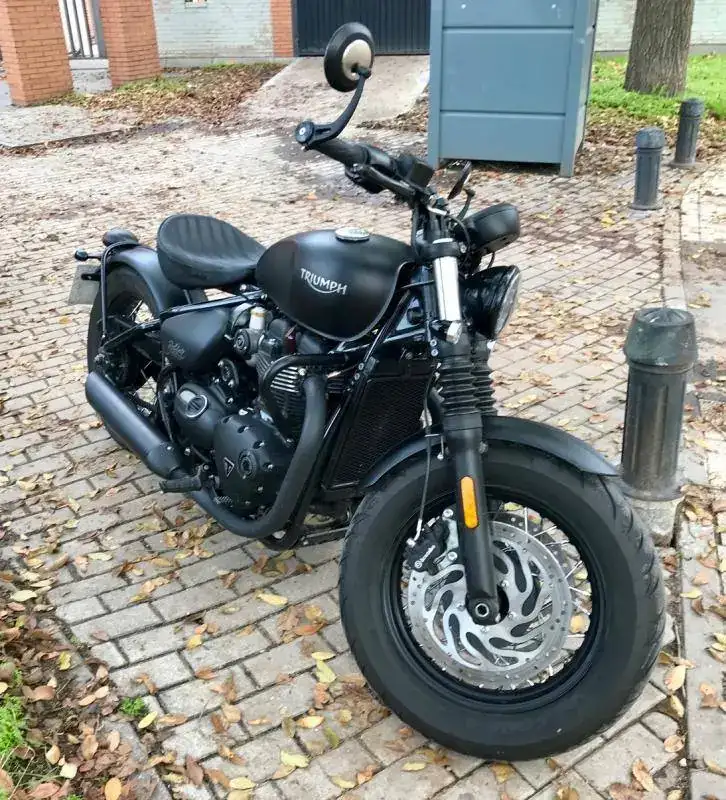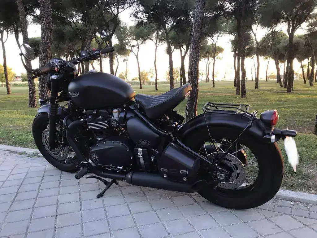 Se trata de una Triumph Bonneville Bobber Black color negro mate prácticamente como nueva.