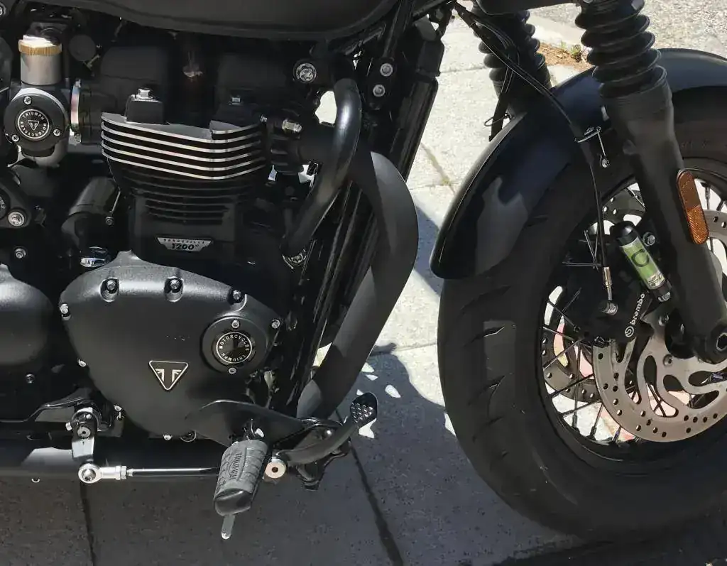 Como algunos sabreís se trata de un modelo mas 'poderoso' que la Bobber normal, teniendo una horquilla mejorada de mayor diámetro (47mm frente a los 41mm del modelo anterior), frenos brembo, dos discos delanteros, luz delantera led y un neumático delantero de 16 pulgadas (frente a los 19 del modelo anterior) que no pasa desapercibido.
