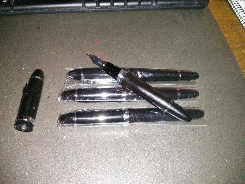 .Resulta que, a puntito que me encuentro de cerrar un trato con un forero para comprar un pluma "pata negra" y que espero presentar pronto, y mientras veo en la tele La Misión, gran película que ahora mismo está en un intermedio, no lo puedo evitar, escucho la voz que te OBLIGA a mirar ebay y acabo de comprarme esto