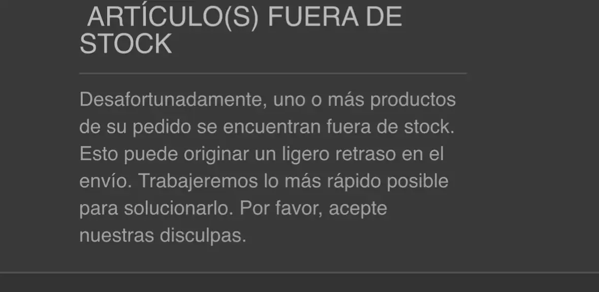 Me acaba de pasar exactamente lo mismo...Me autocito… pues aparentemente lo compré en “stock” y me sale “esto”. Bueno, supongo que la tienda será de confianza y esperemos que llegue. Realmente estoy cubierto y me animé porque me resulta muy atractivo en este color…