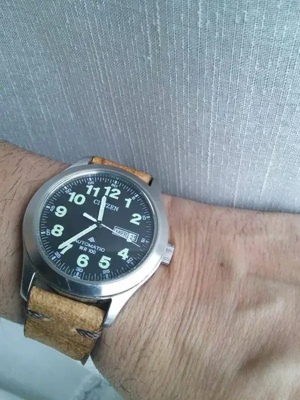 Un citizen citizen nh6050 de hace 8 o nueve años, recién aceitado y revisado, y además con pantalones nuevos, 45 euros tienen la culpa, pero como dicen los compañeros el primer automático hay que conservarlo bien.