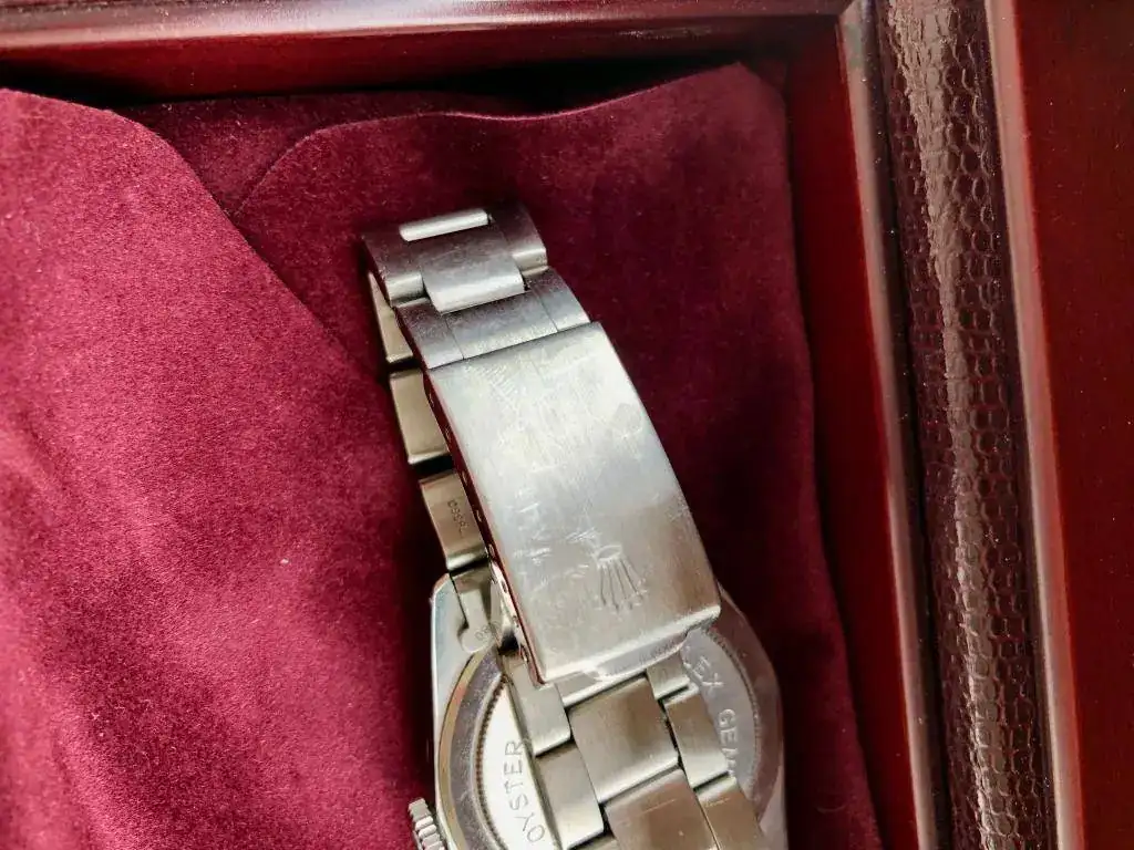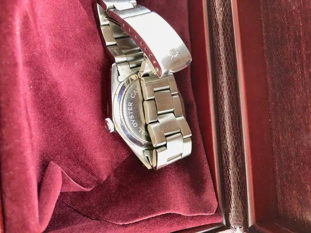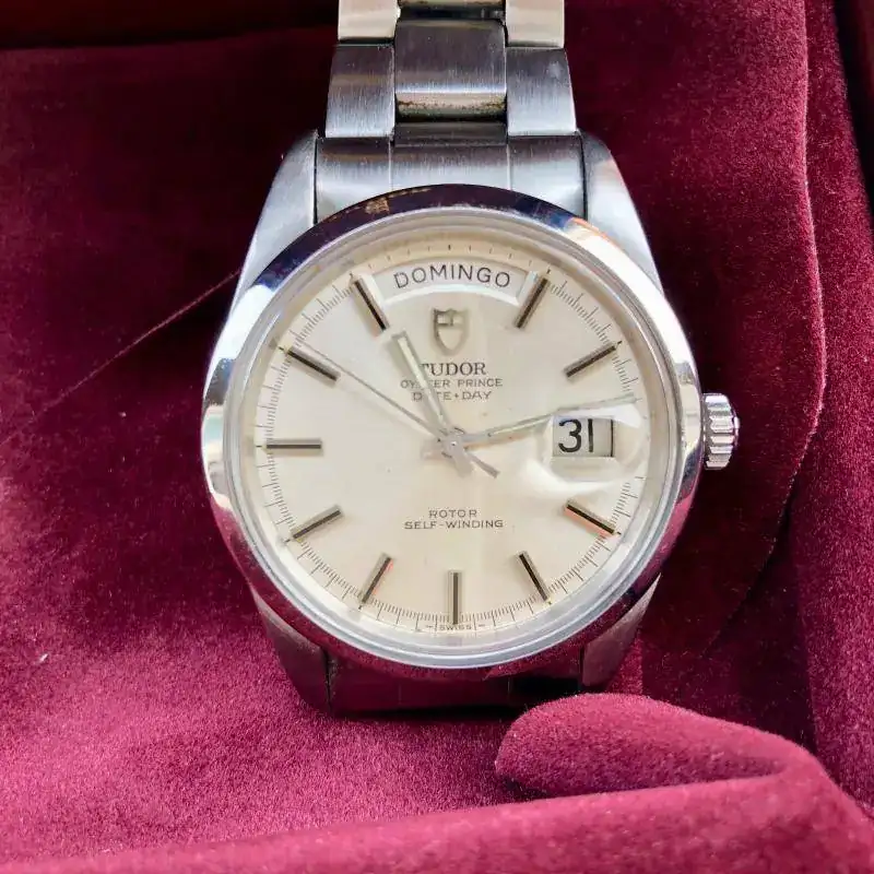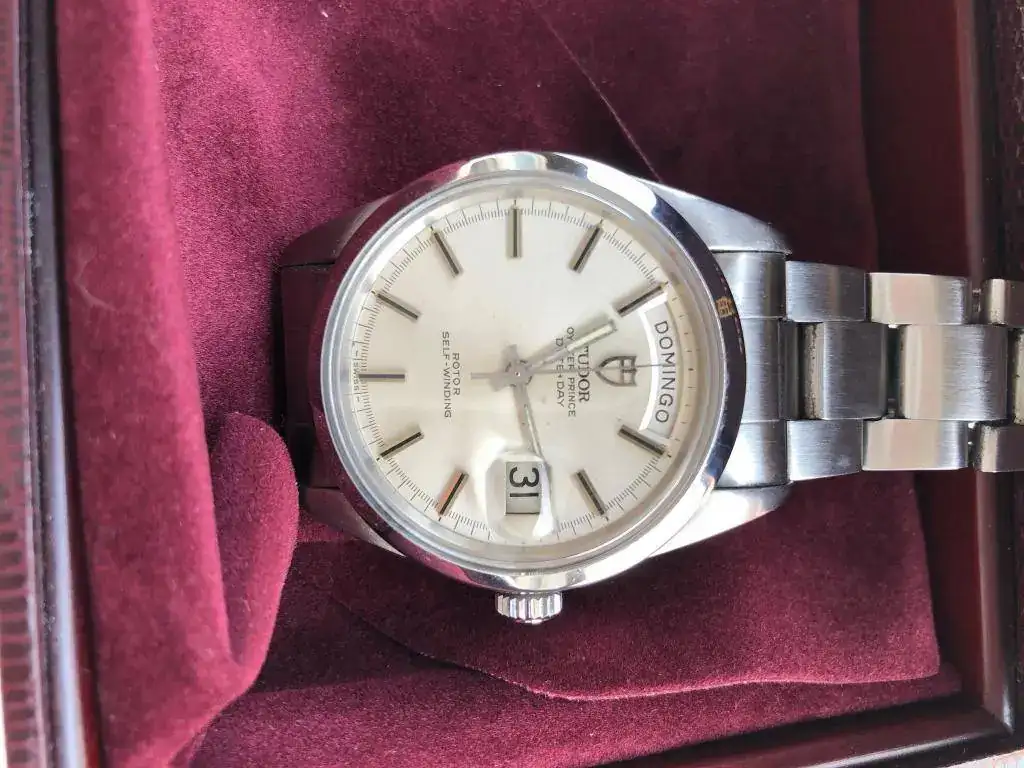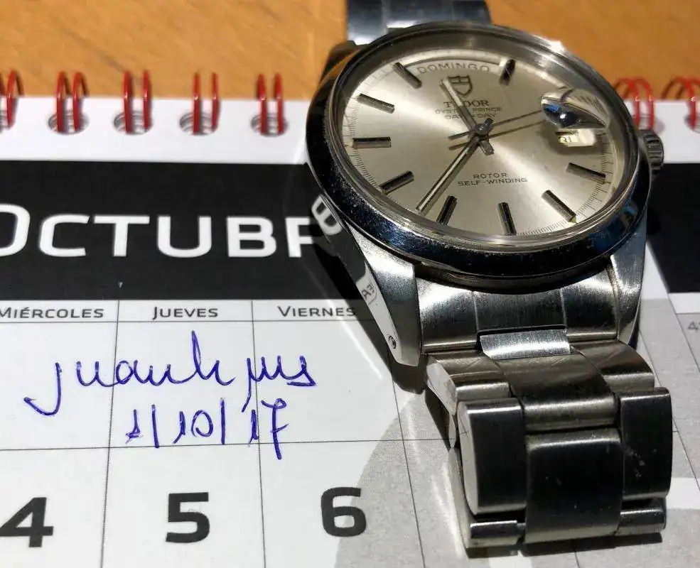 No lo vendo o sea que no quiero ninguna oferta económica. Es un reloj muy difícil de encontrar y más ne este estado. Corona Rolex, tapa posterior Rolex y armis Rolex y sin holguras de ningún tipo. La medida es perfecta y en la muñeca simula al menos 40 mm. Ah y superimportante, el calendario es castellano.