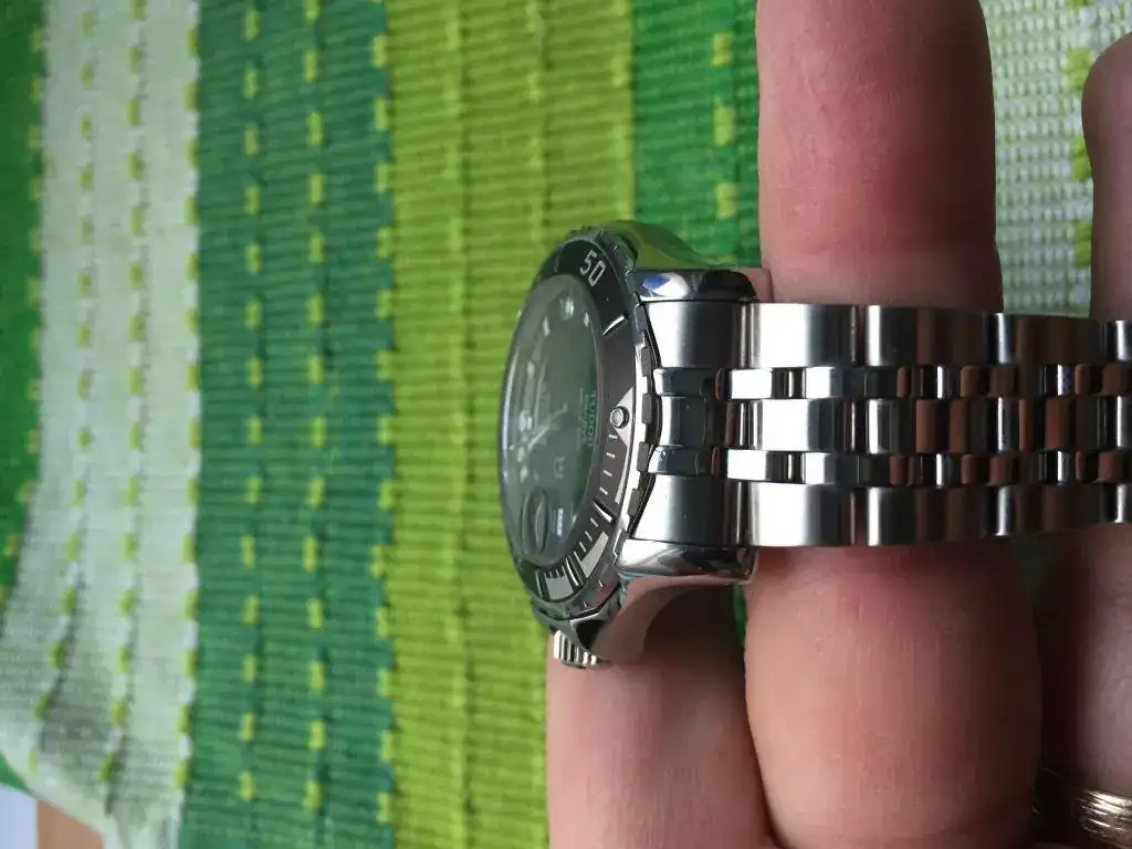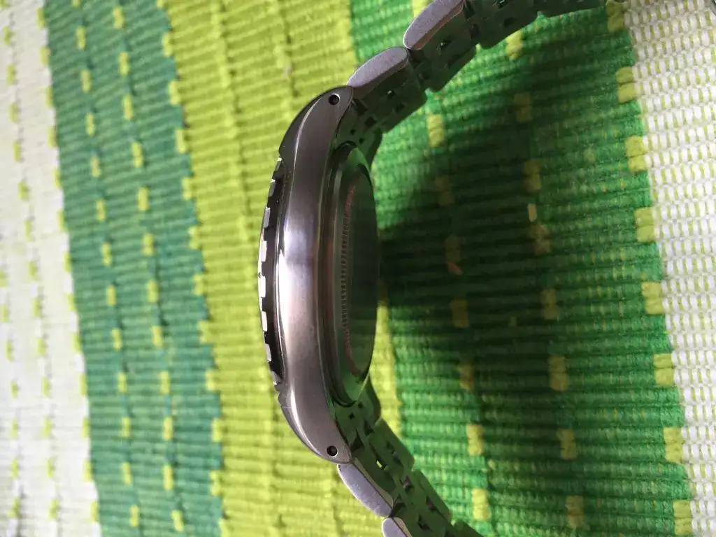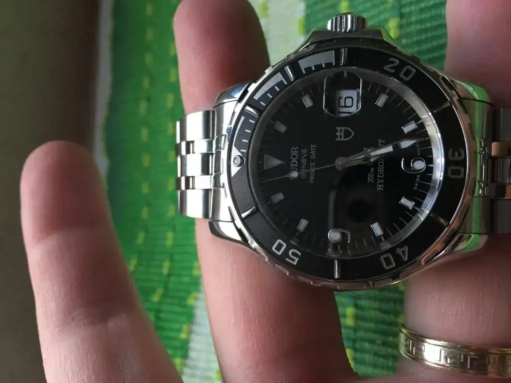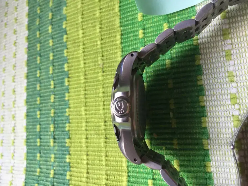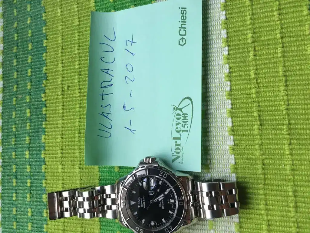 Buenos días compañeros,saco para venta/cambio este Tudor Hydronaut ref:89190p,es una versión extraña(es el único que conozco con los números 6/9 en la esfera y el emblema de Tudor al lado de la lupa).El reloj pasó en diciembre del 2016 una revisión completa en el servicio Rolex/Tudor con pulido incluido.El estado del reloj es muy bueno..solo hay dos cosas que reseñar(la carrura está abollada en el lado contrario a La Corona,y uno de los protectores de La Corona por su parte inferior está golpeado)ambas cosas con el reloj puesto no se ven,en el servicio técnico Rolex me ofrecieron cambiar la carrura por una de servicio,a lo que me negué.Su estado aparte de esos detalles es perfecto y la marcha diaria en Cosc(3/4" día de adelanto)