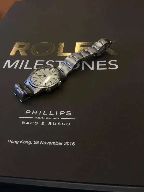 Junto con el reloj va un brazalete Rolex Oyster a remaches fabricado por C&I en los Estados Unidos. El brazalete tiene fecha 7/68. or increíble que parezca estos relojes se vendían con este brazalete, he visto más de uno con él y dado que el Advisor 10050 se vendió entre 1969 y 1979 y era usual que las piezas vendidas en los Estados Unidos se vendiesen con este brazalete. En Europa normalmente llevaban el 7835.
