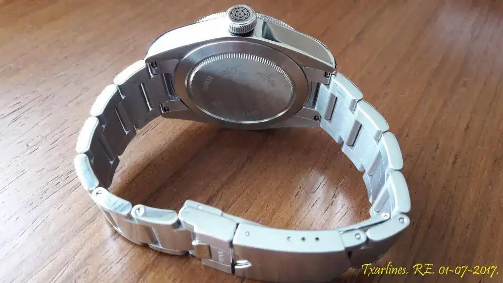 El estado es muy bueno, por no decir excelente. Es un reloj usado y rotado con otros pero, al tener el cepillado a espejo en algunas de sus partes, es inevitable algunos pelillos en ellas.