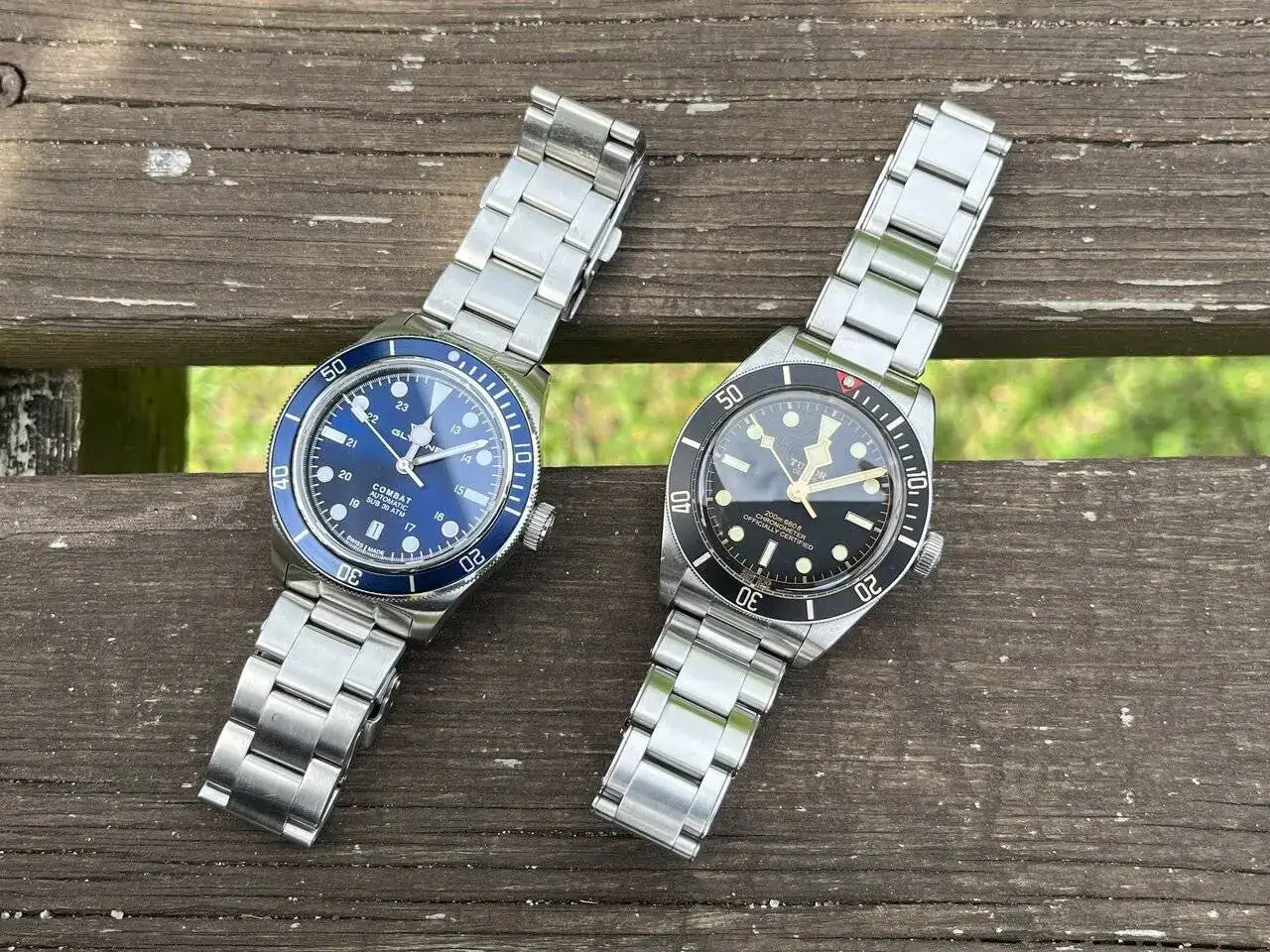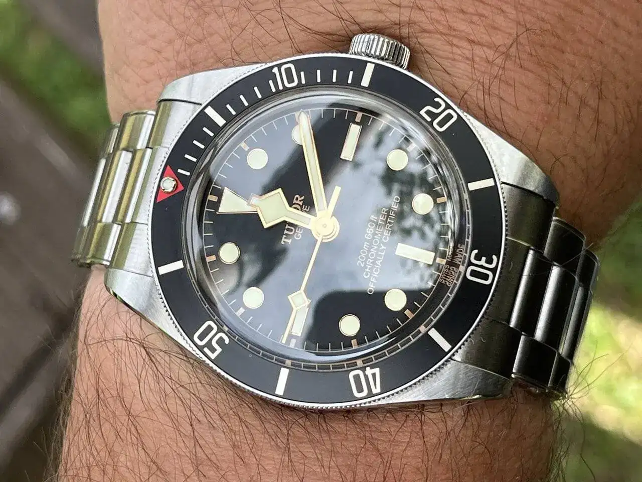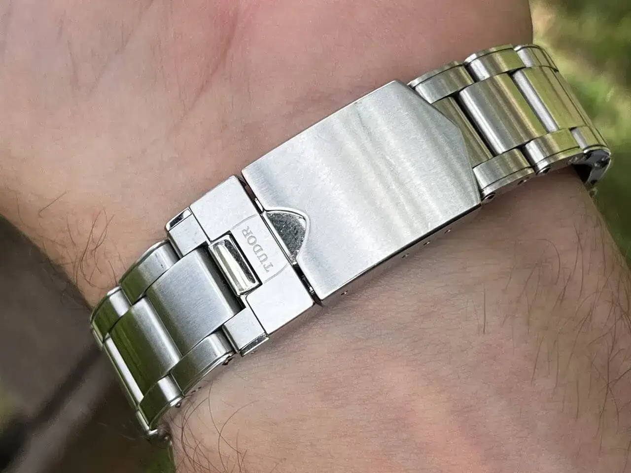 En muñeca también hay diferencias, ambos se ajustan muy bien y el Glycine siendo muy digno, la finura de los acabados del Tudor, ese zafiro sobresaliendo y los pequeños detalles se hacen notar.