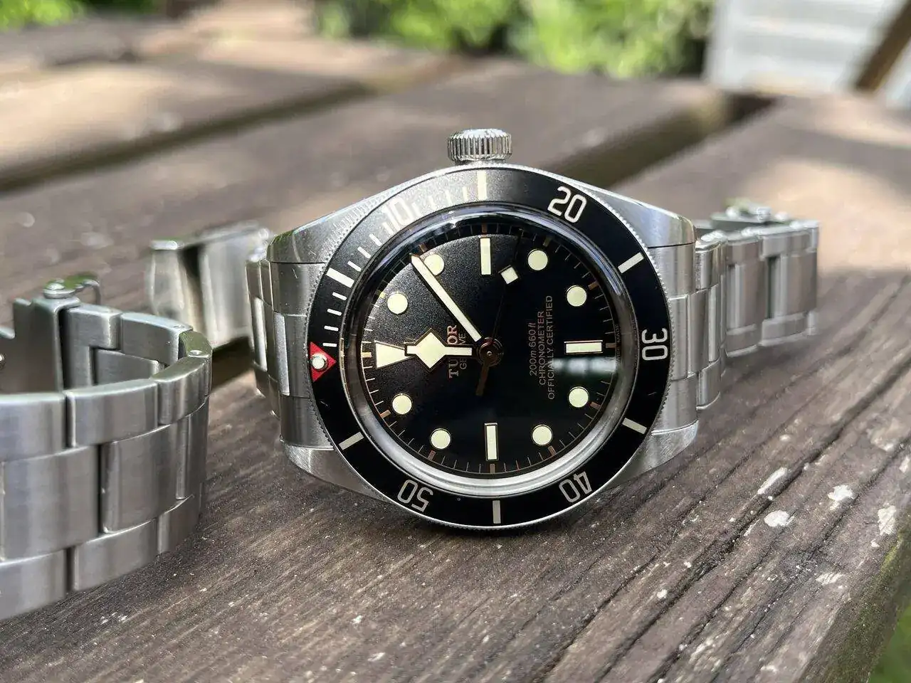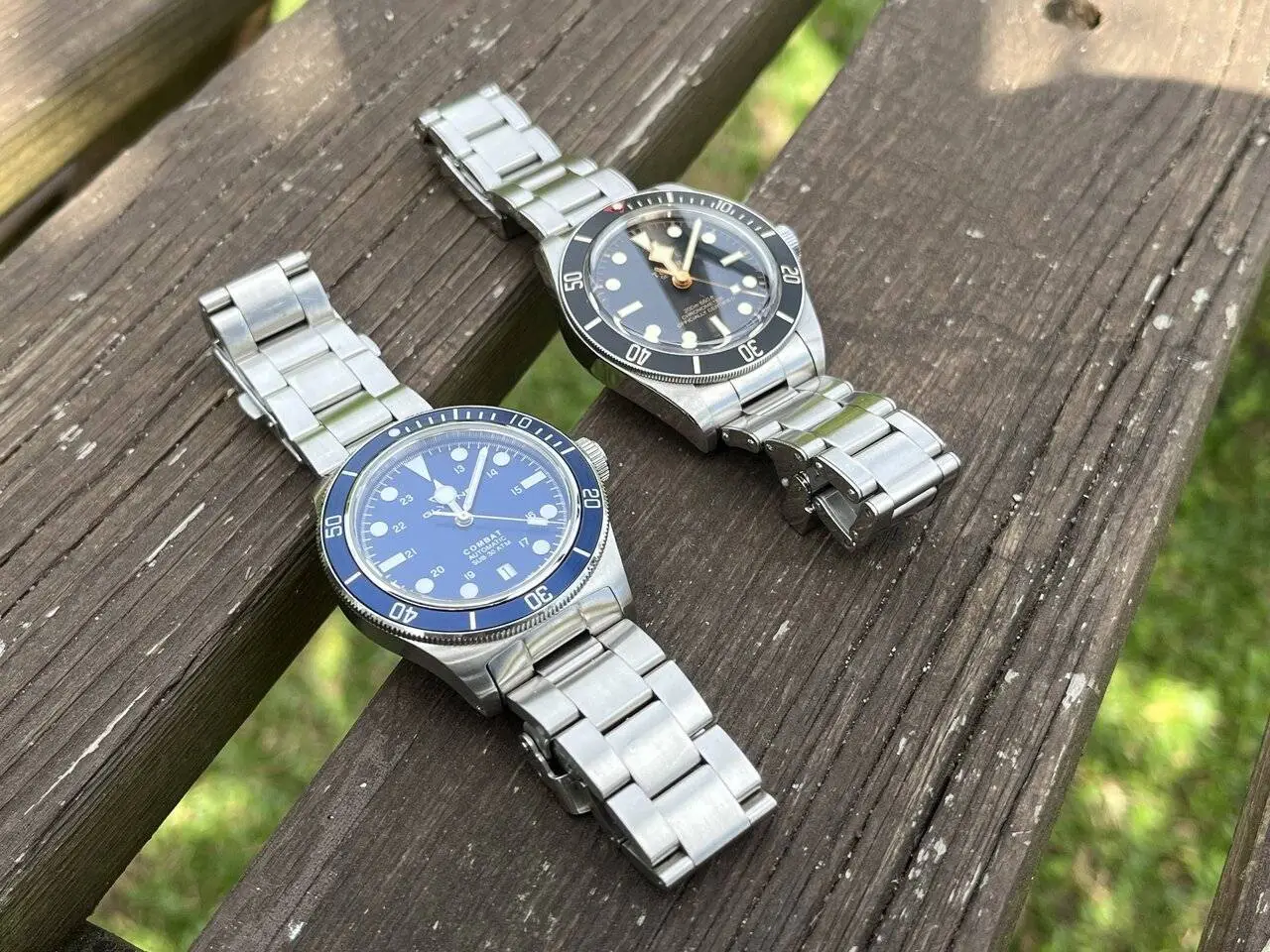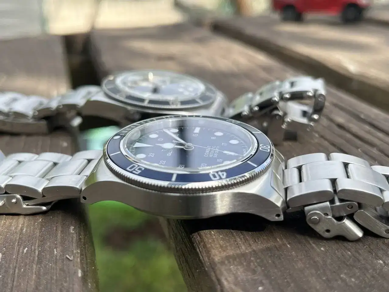 En muñeca también hay diferencias, ambos se ajustan muy bien y el Glycine siendo muy digno, la finura de los acabados del Tudor, ese zafiro sobresaliendo y los pequeños detalles se hacen notar.