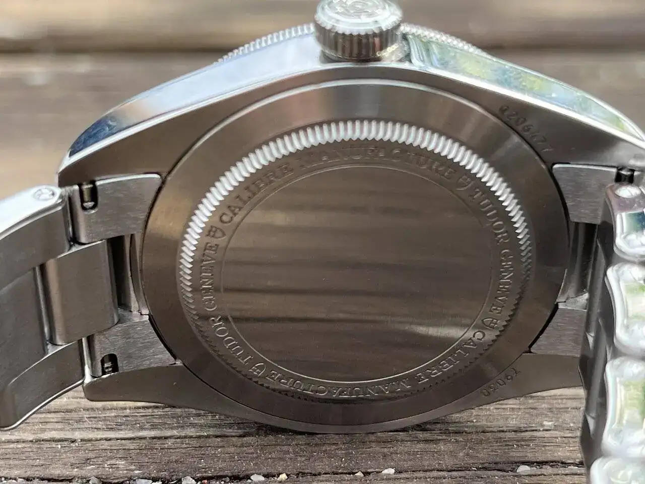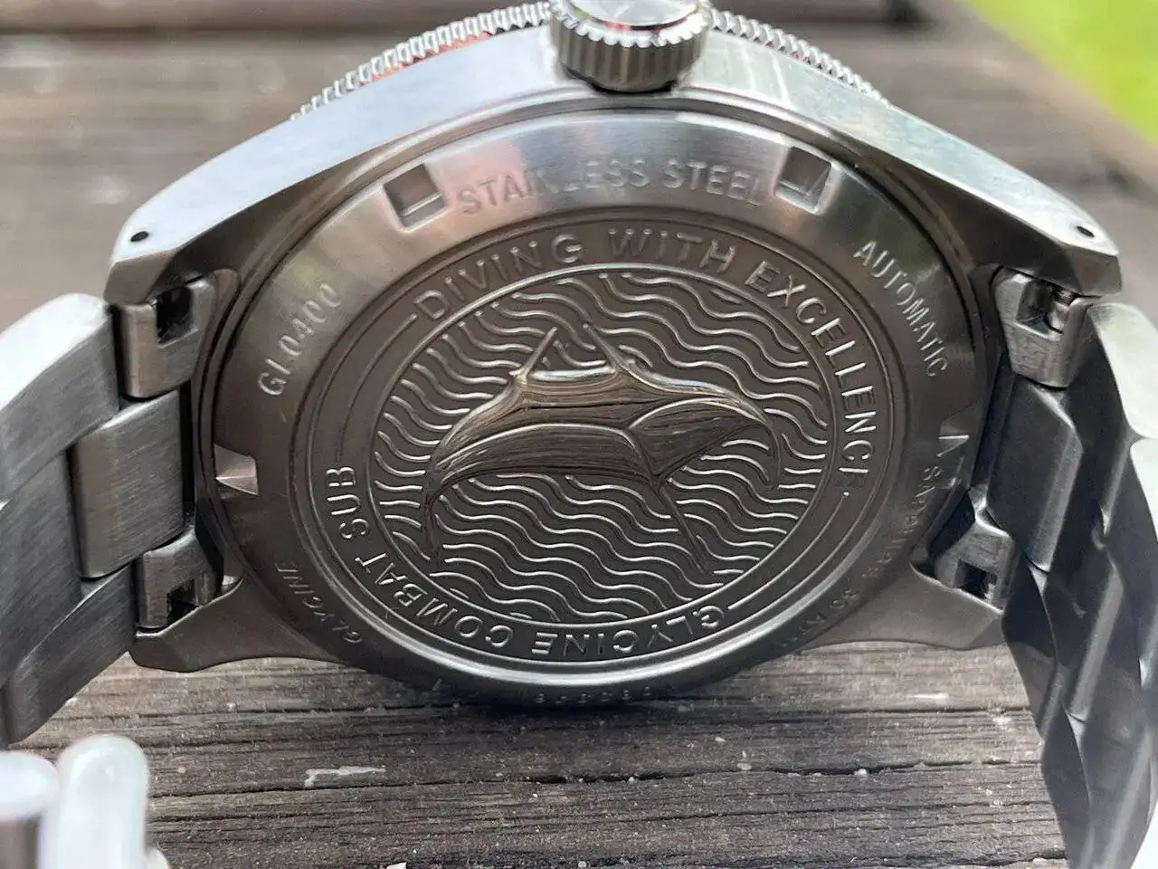 Ahora viene el fondo, Tudor nos deleita con este fondo tipo Rolex tan limpio y característico, mientras Glycine opta por un estampado en relieve que creo que es uno de los mejores de la marca.